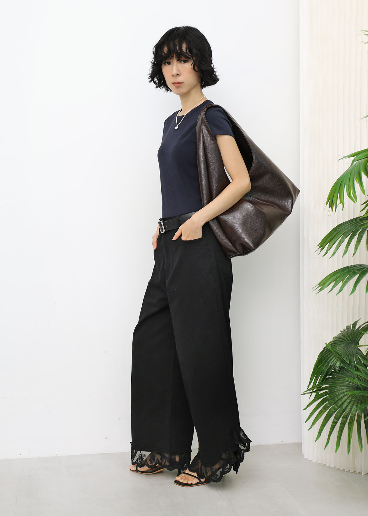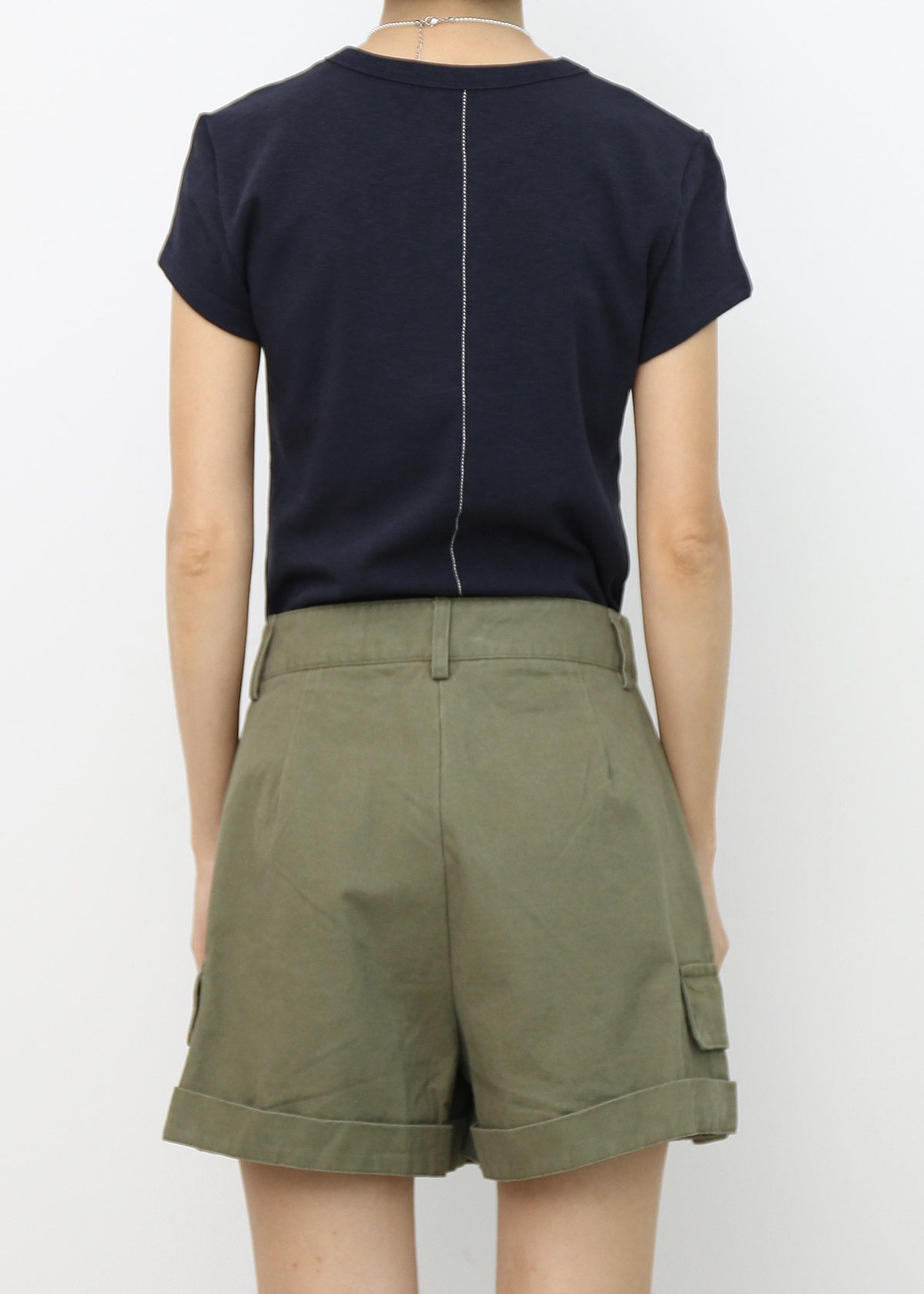 Basic Tee with Contrast Back Stitch [Navy]