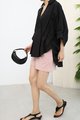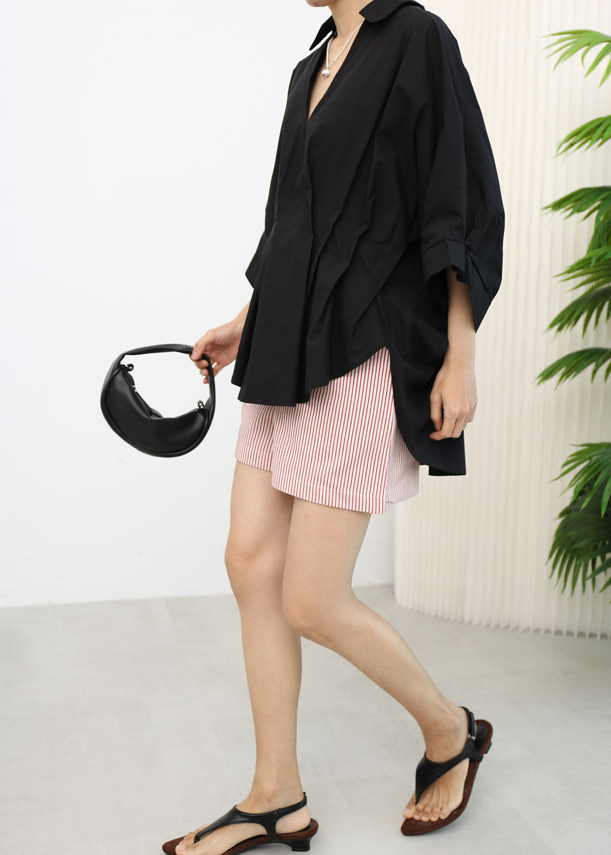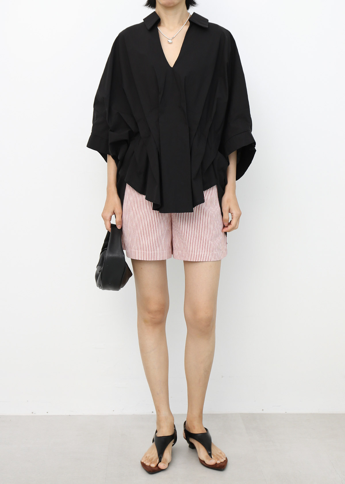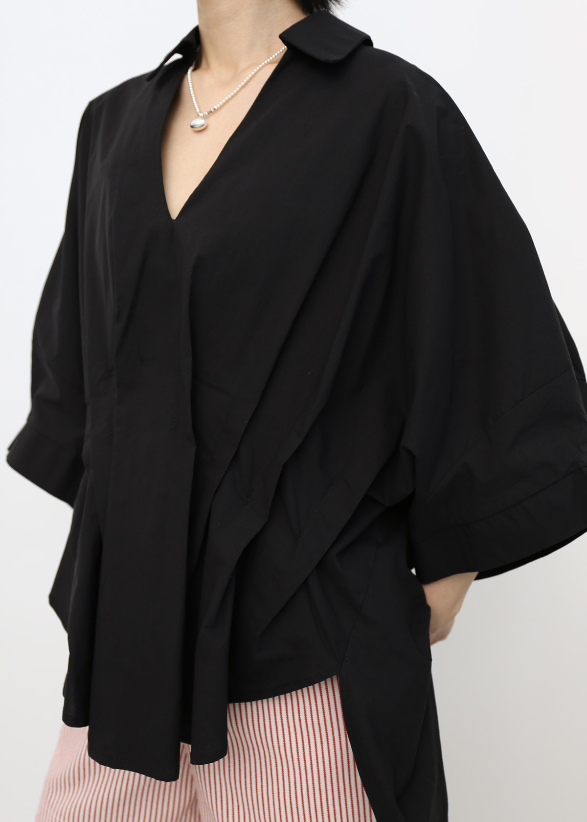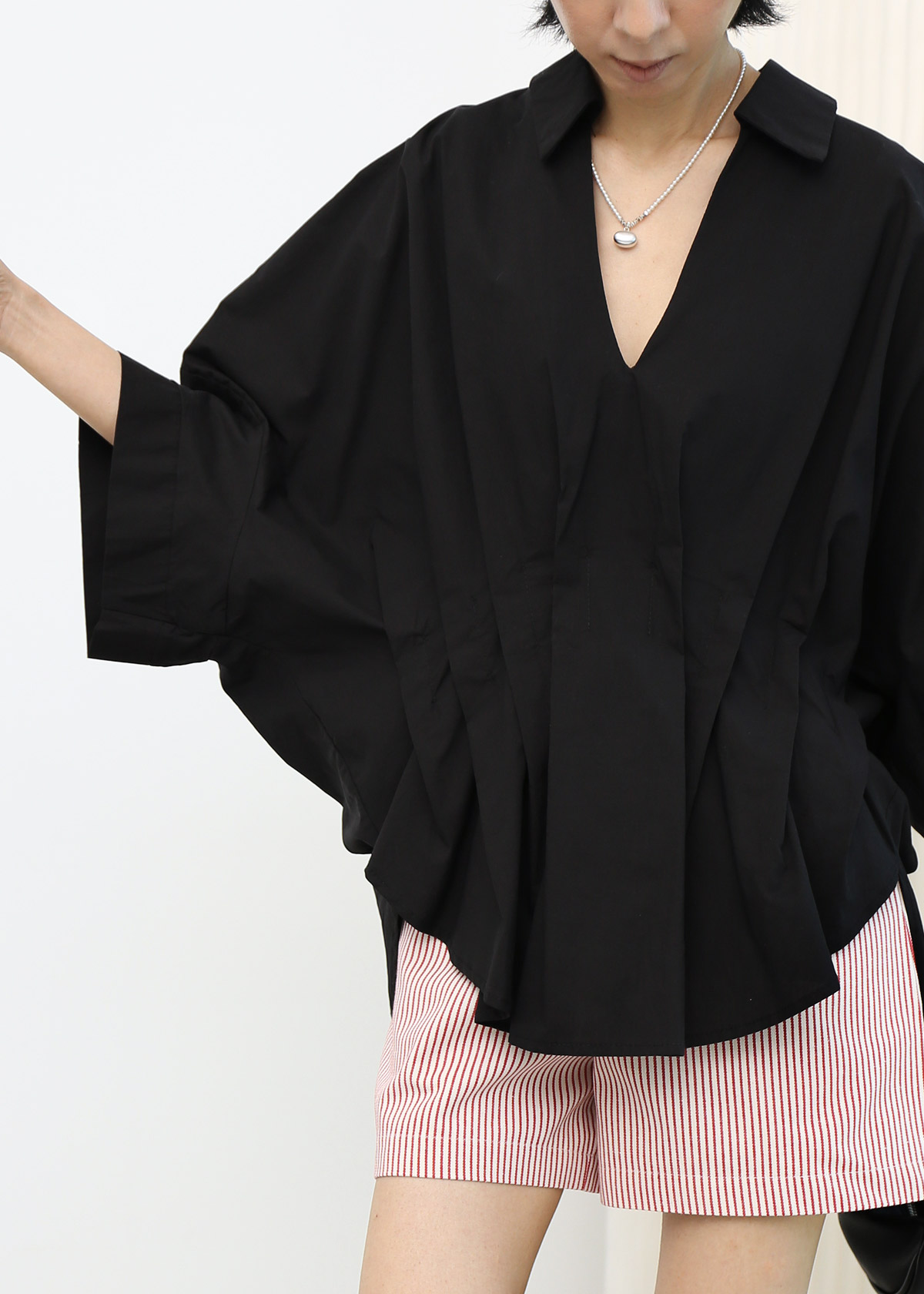 Batwing V Neck Blouse [Black]