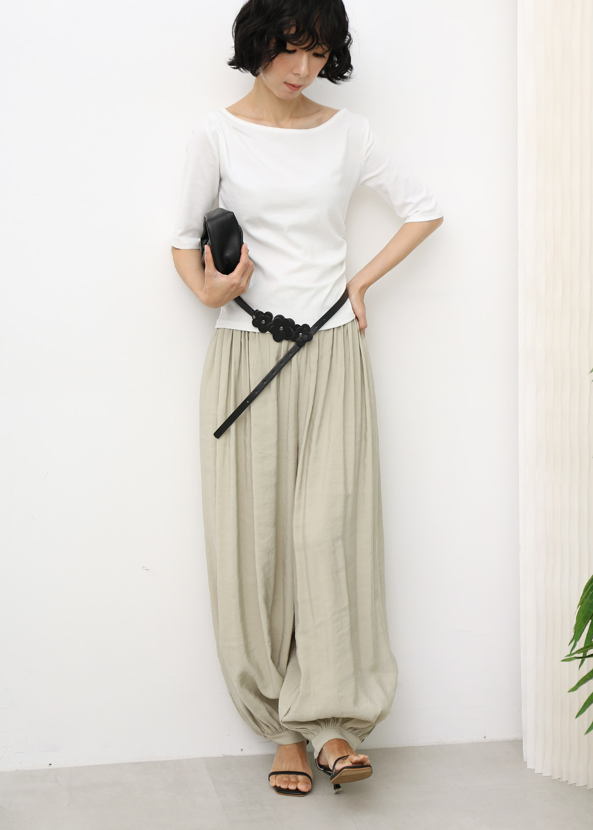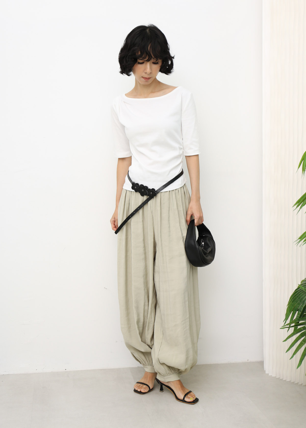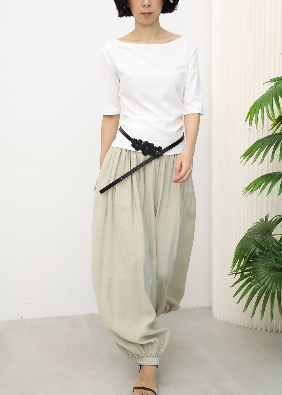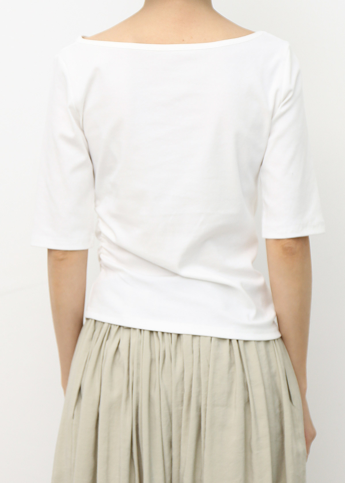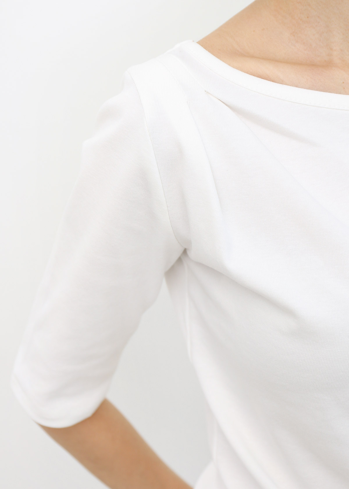 Boat Neck Mid Sleeves Tee [White]