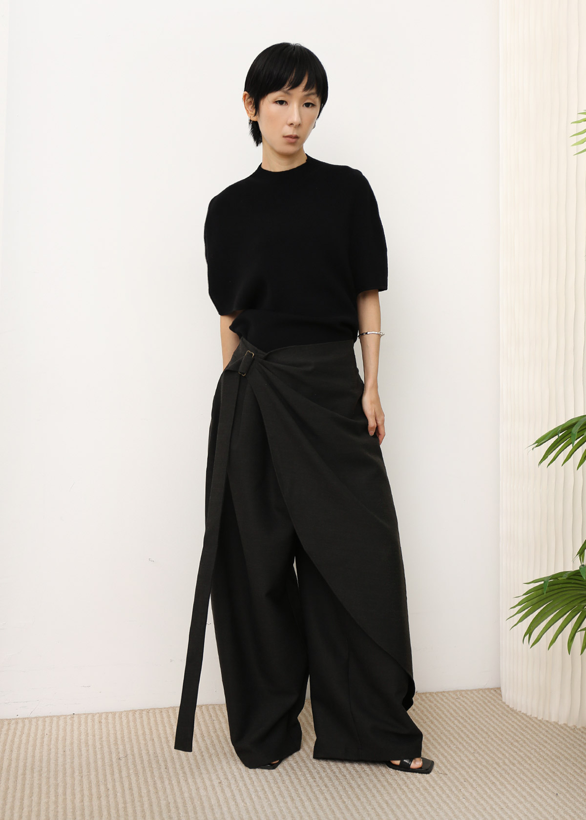 Cocoon Shoulder Knit Top [Black]