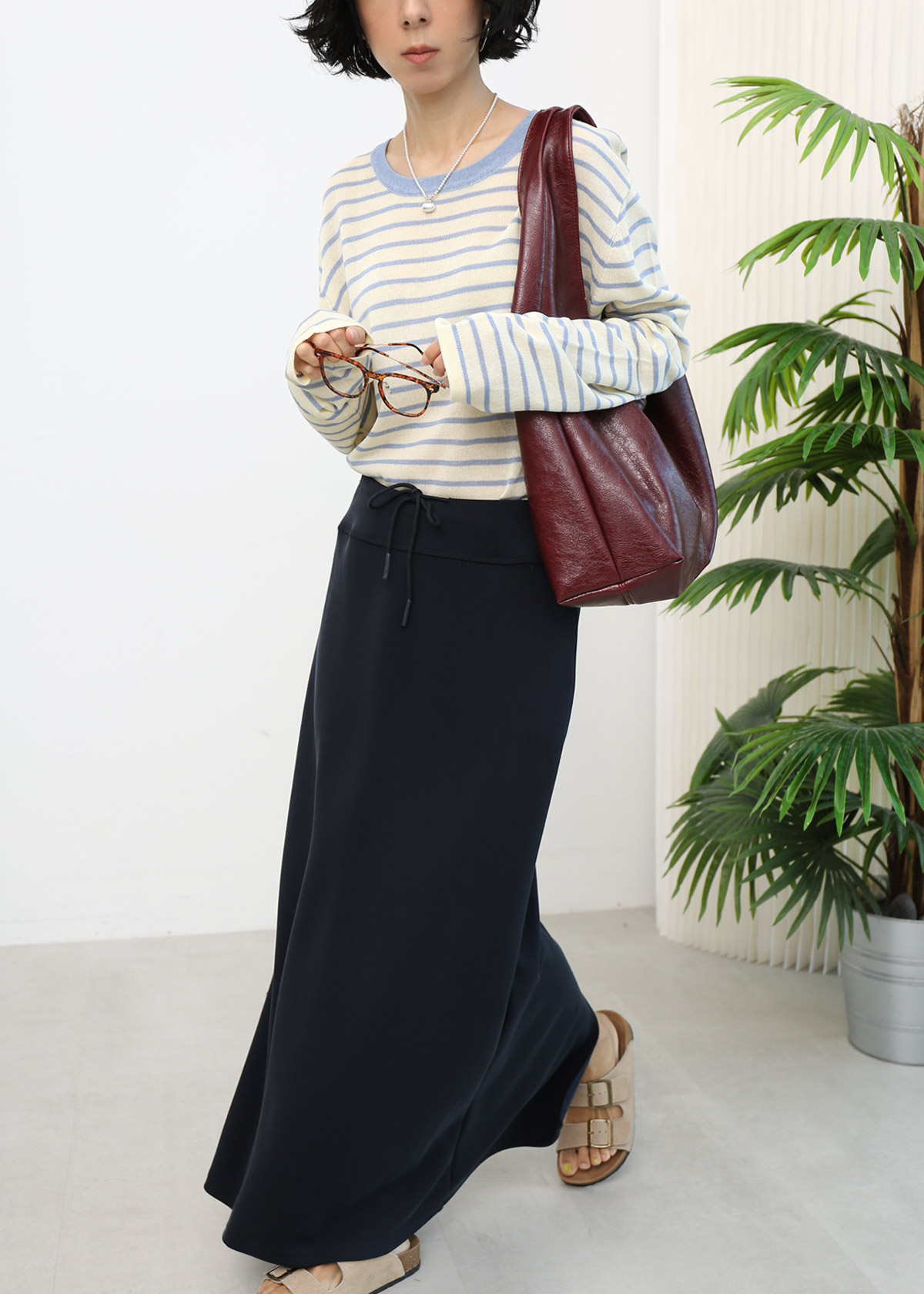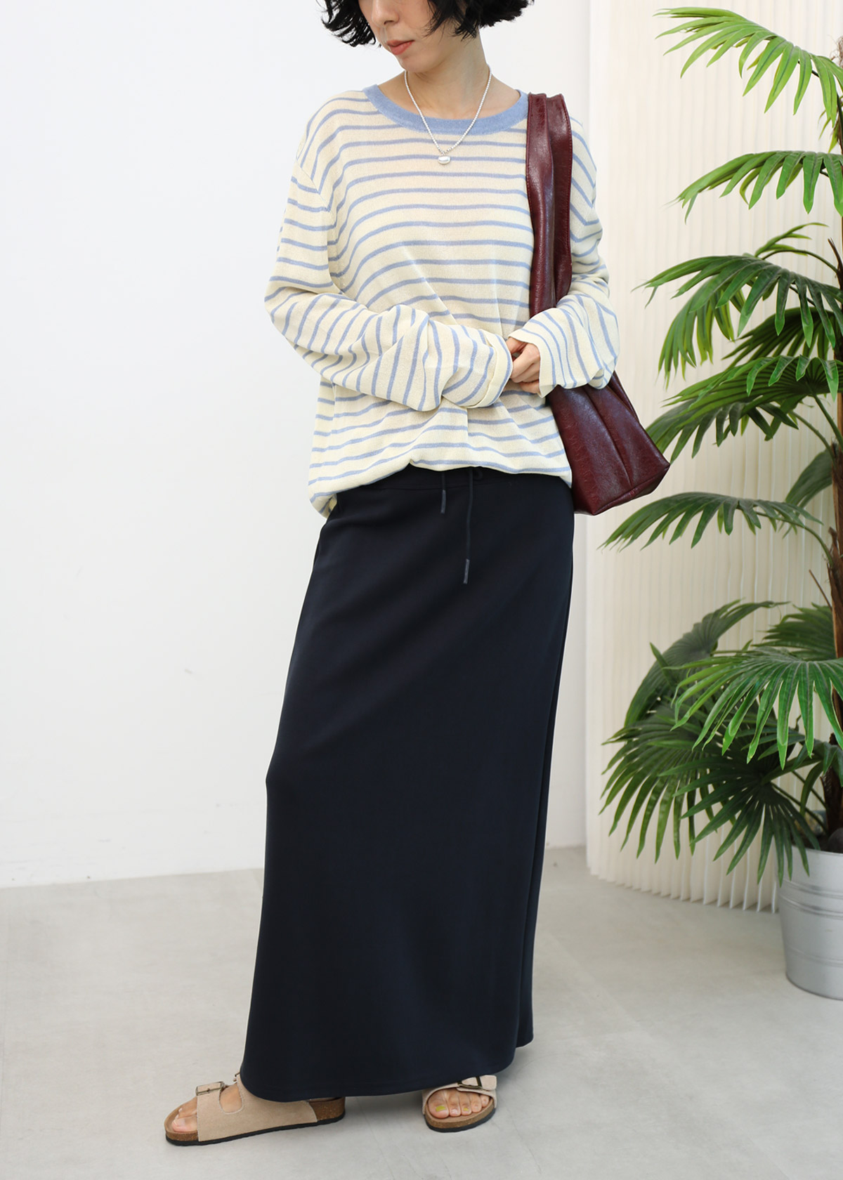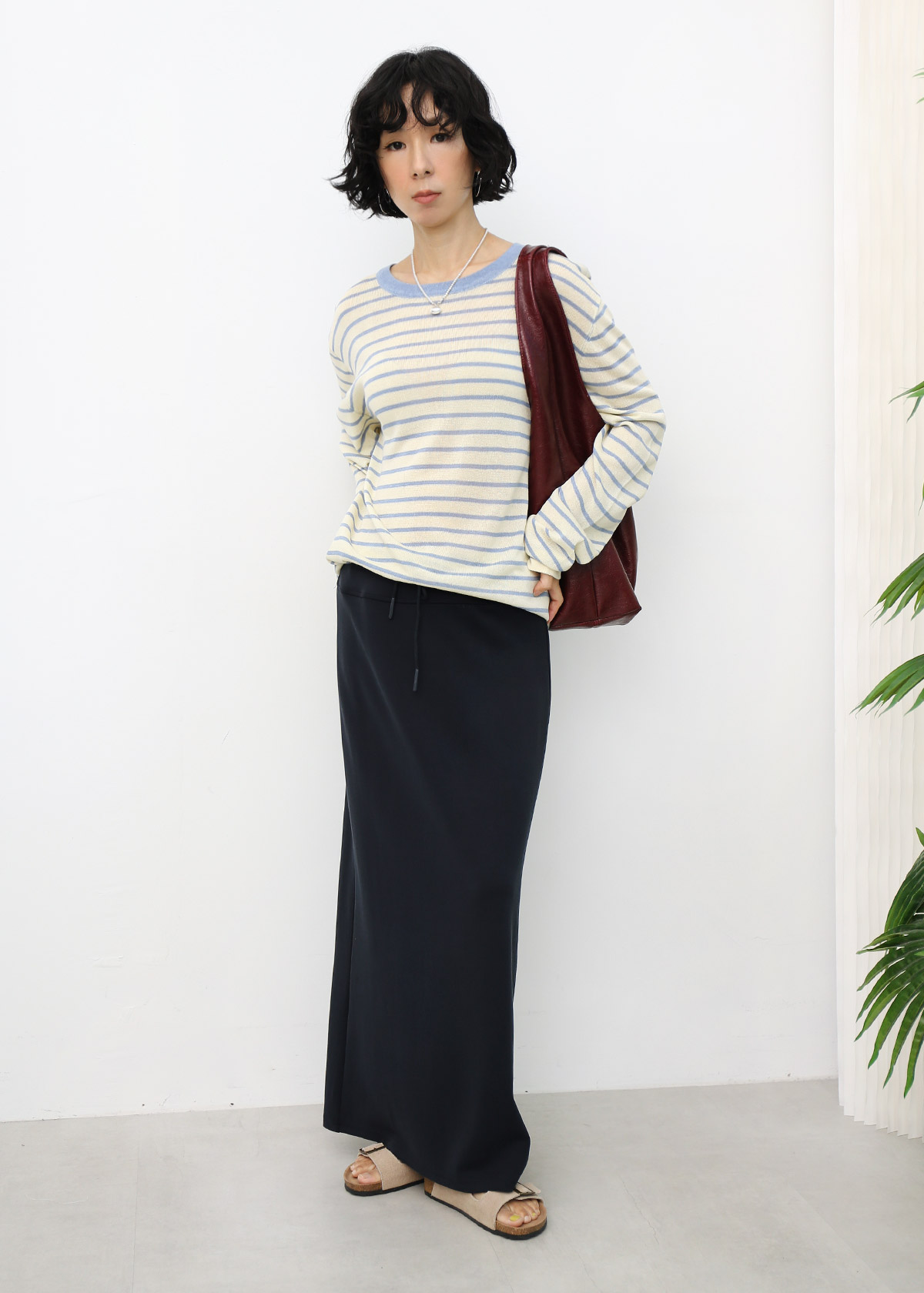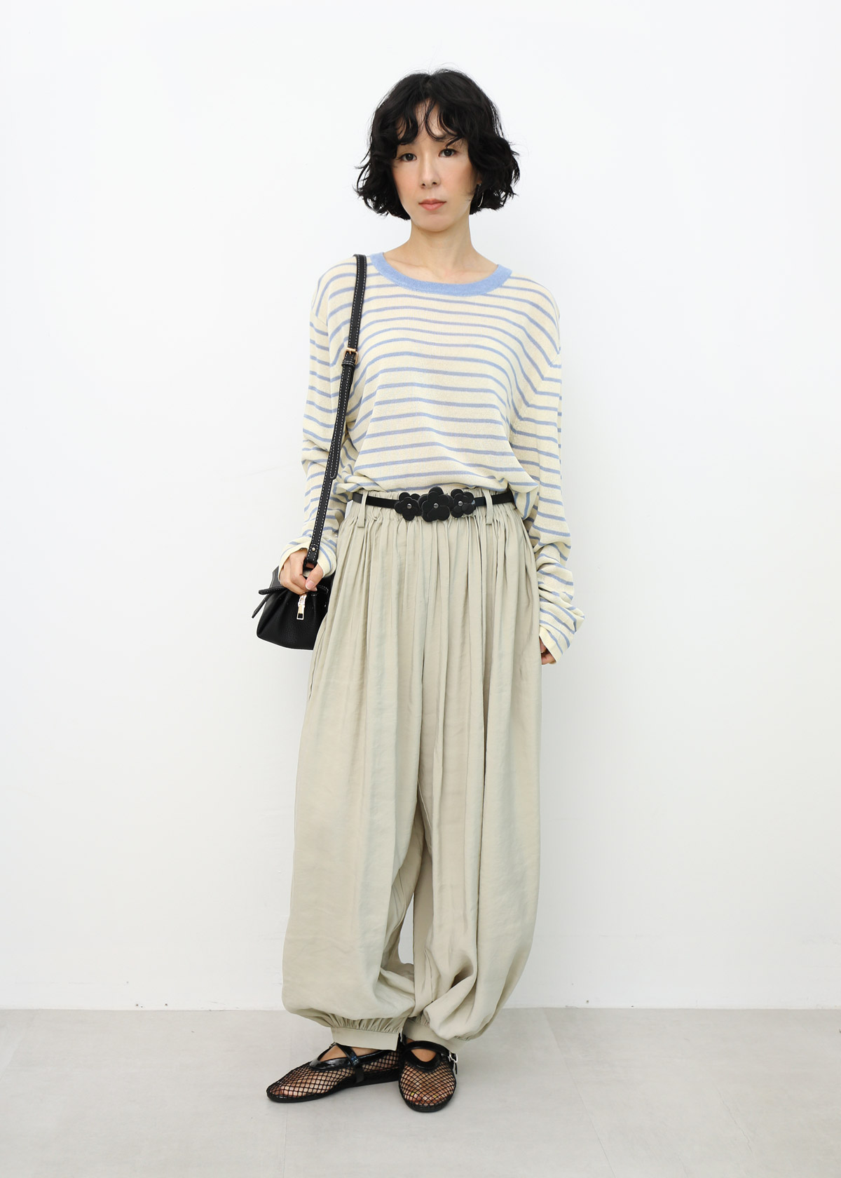 Yen is 163cm, UK 10-12 for top and bottom.