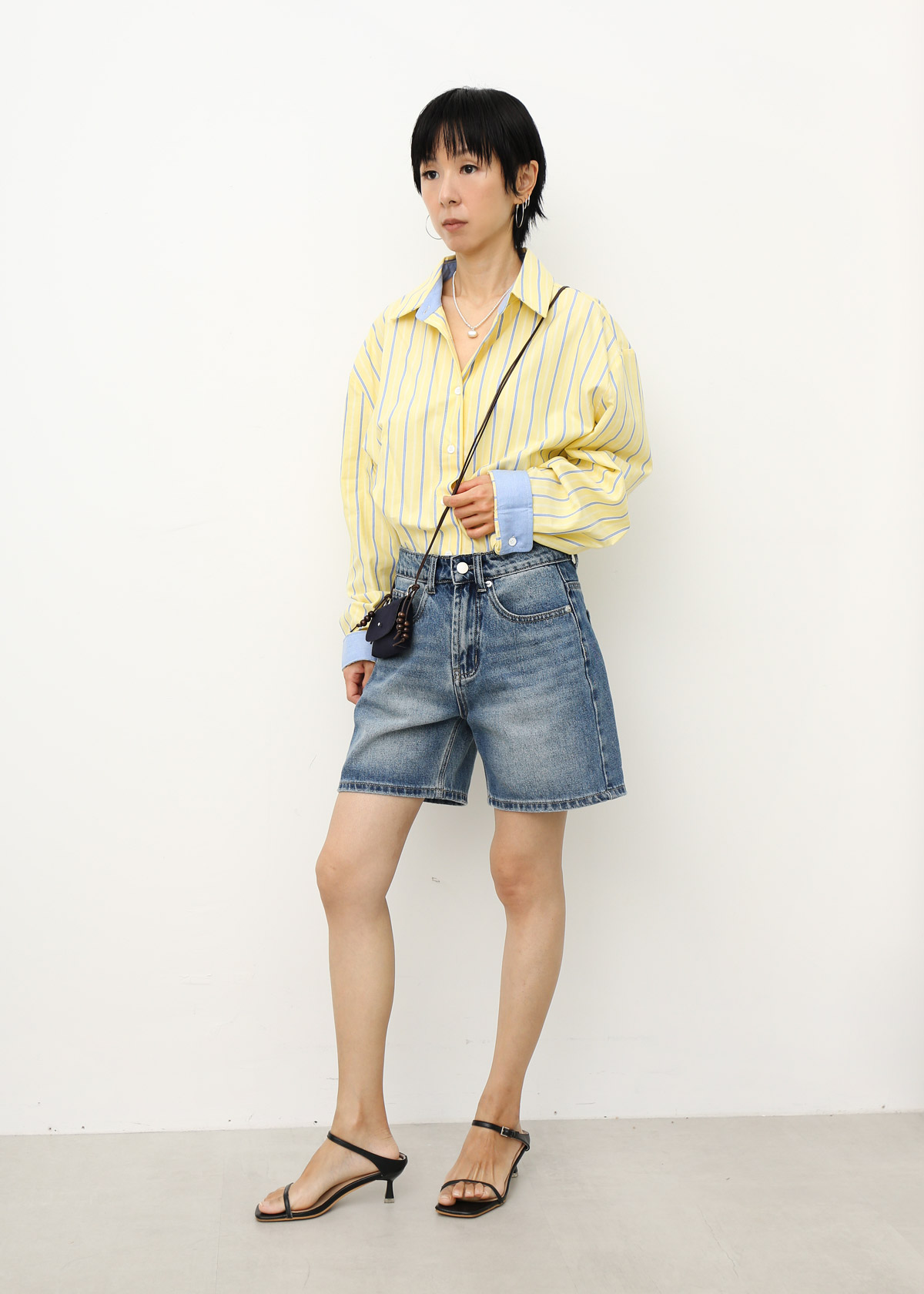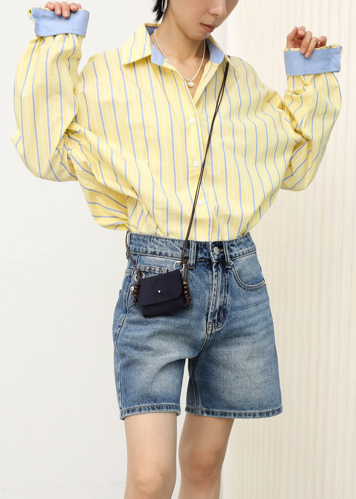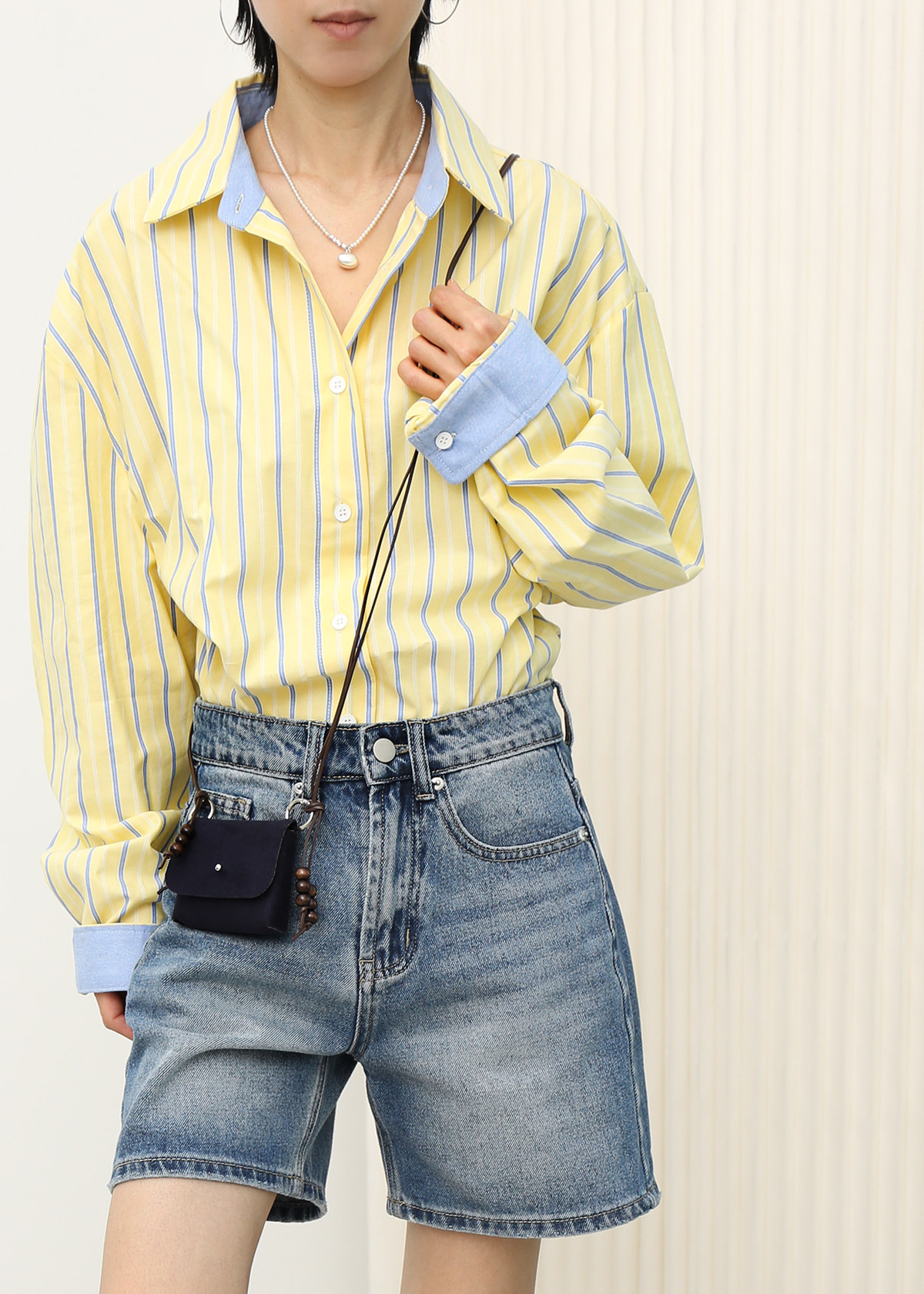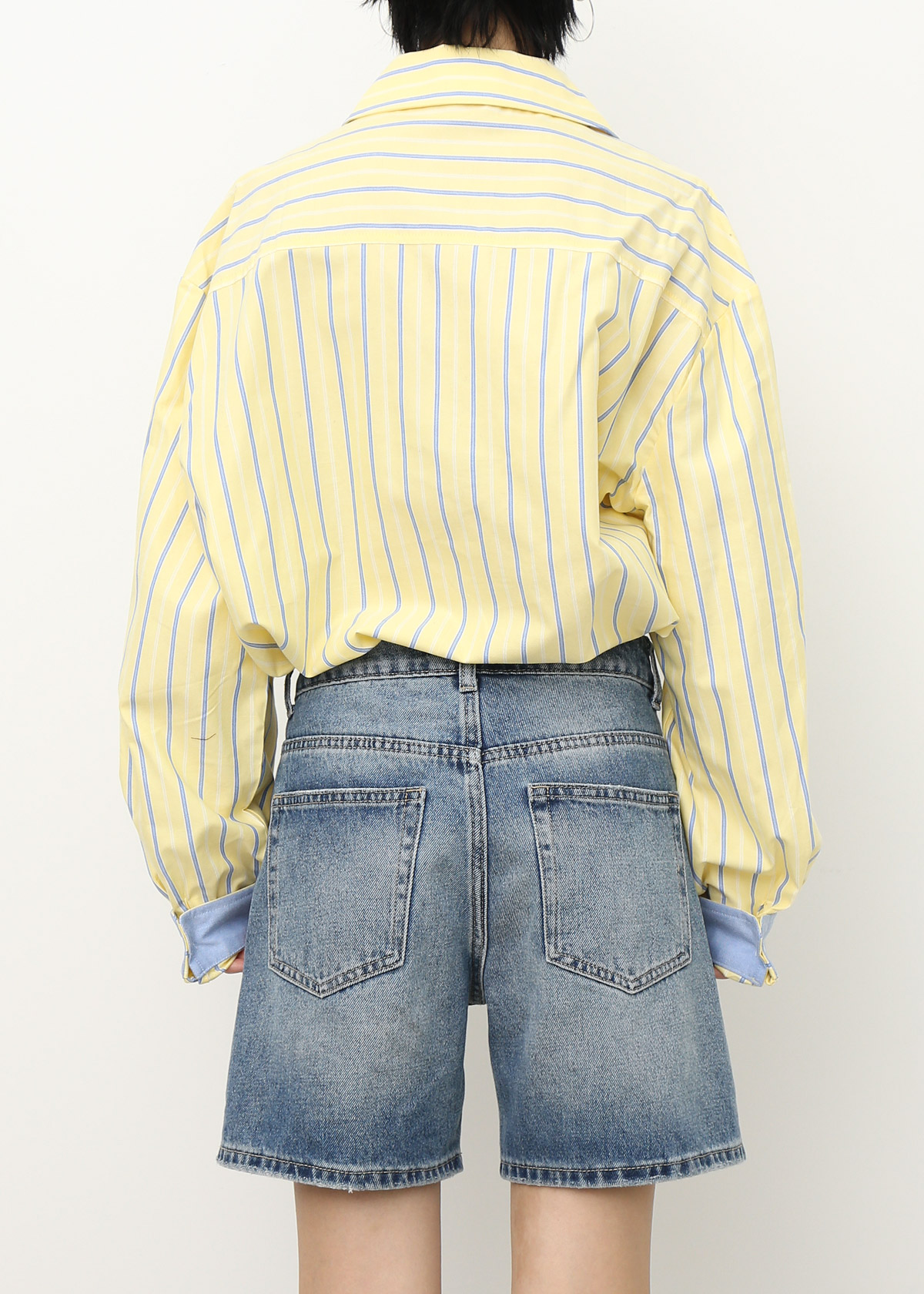 Contrast Cuff Stripe Shirt [Yellow]