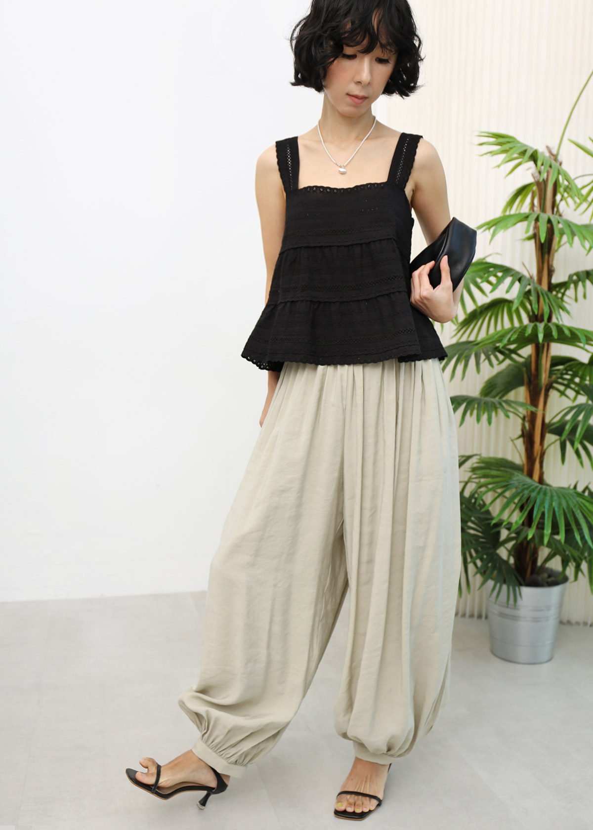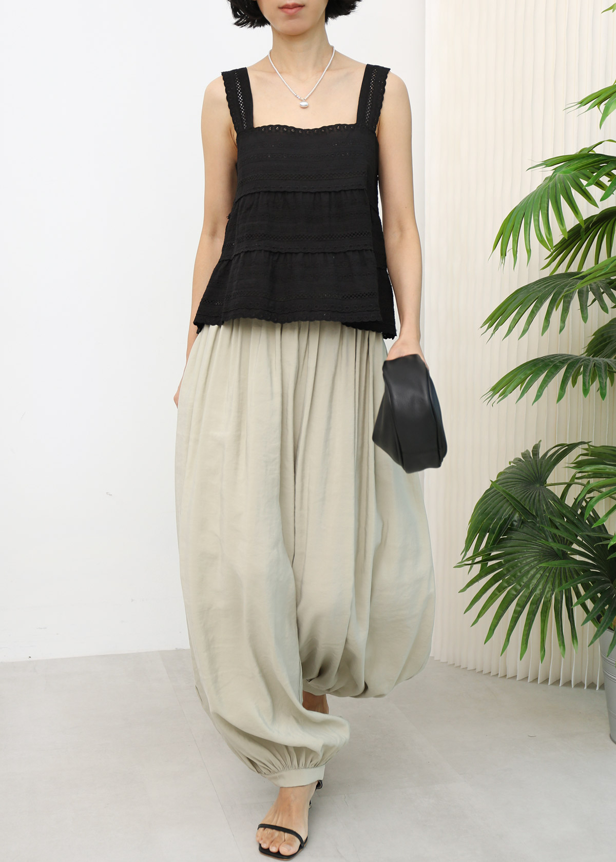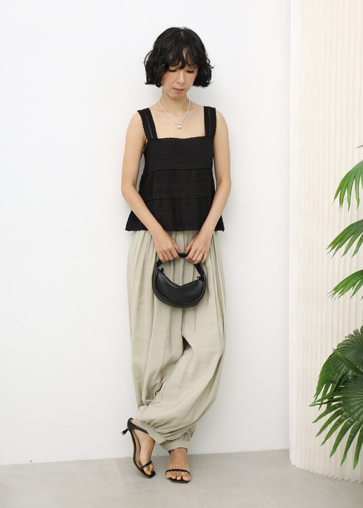 Cotton Lace Babydoll Top [Black]