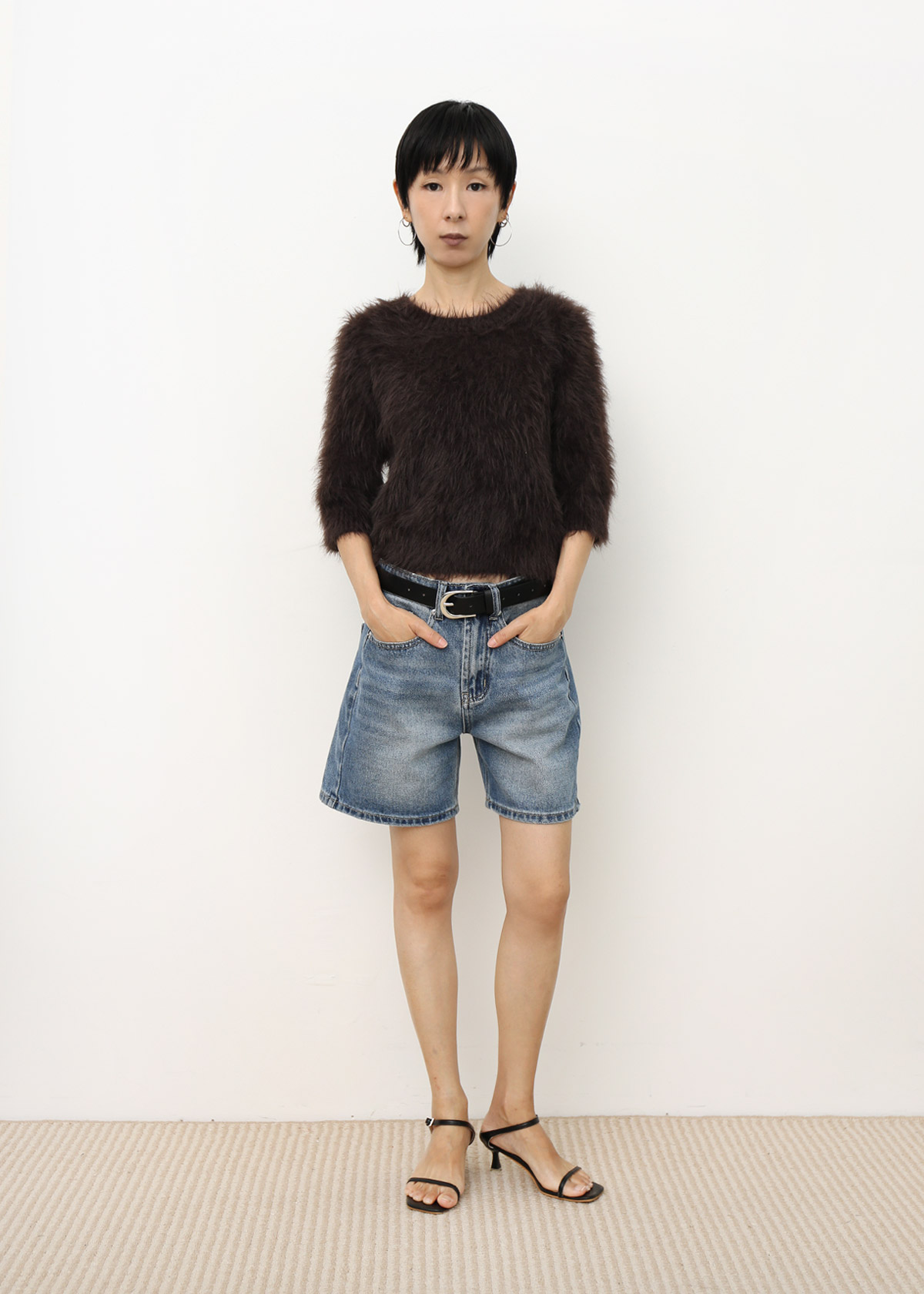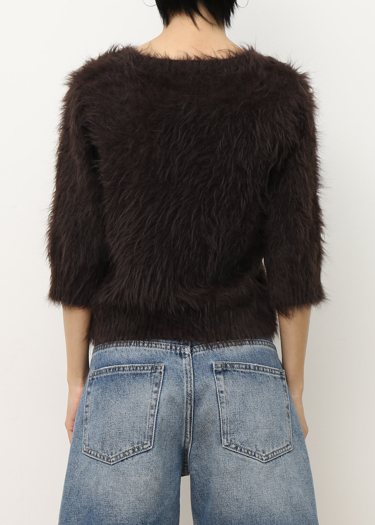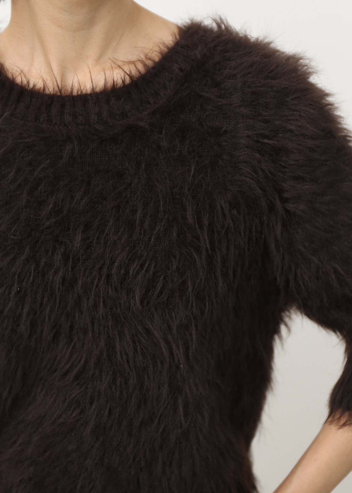 Fuzzy Mid Sleeves Faux Fur Top [Espresso]