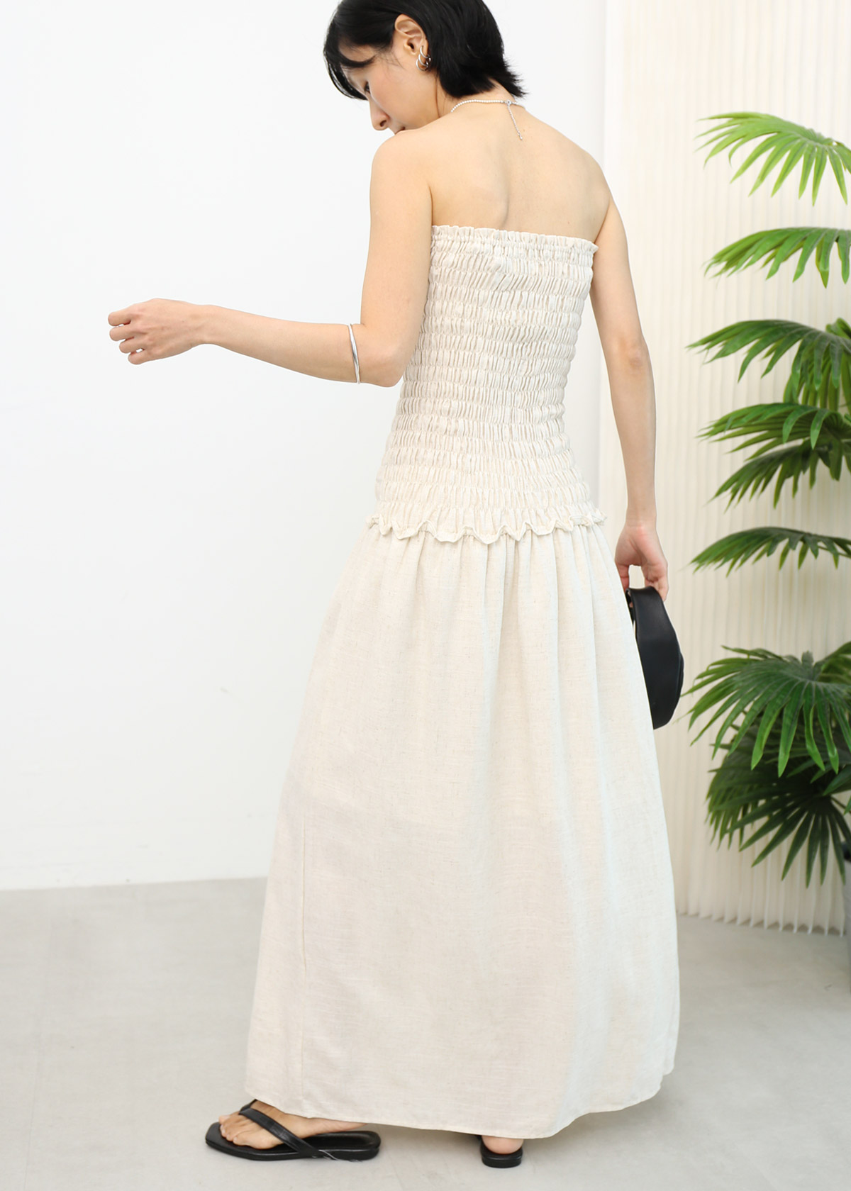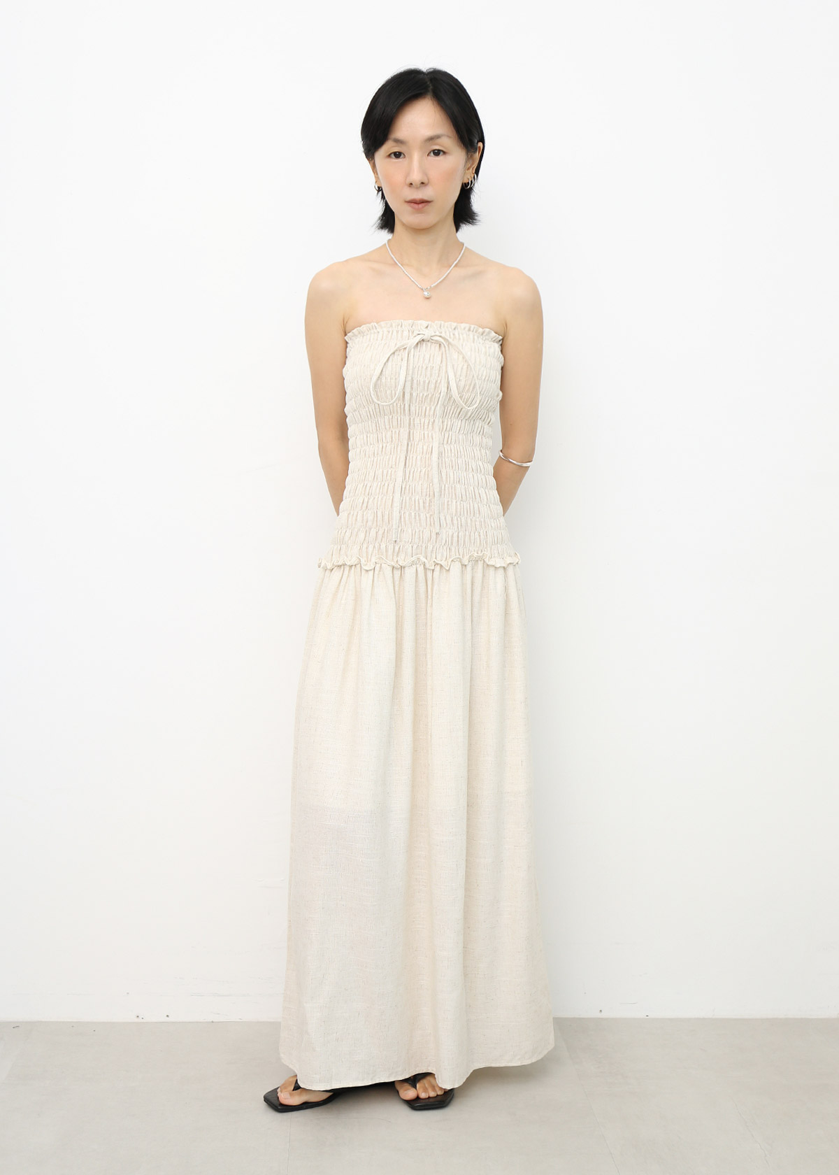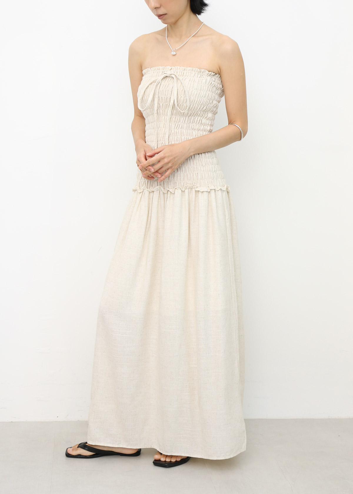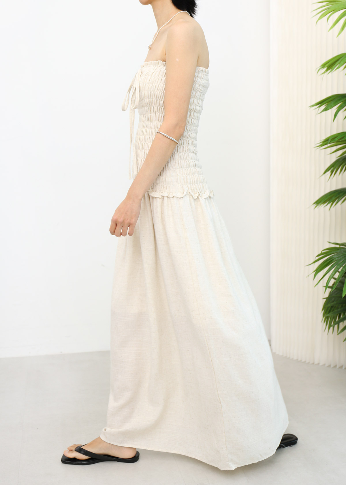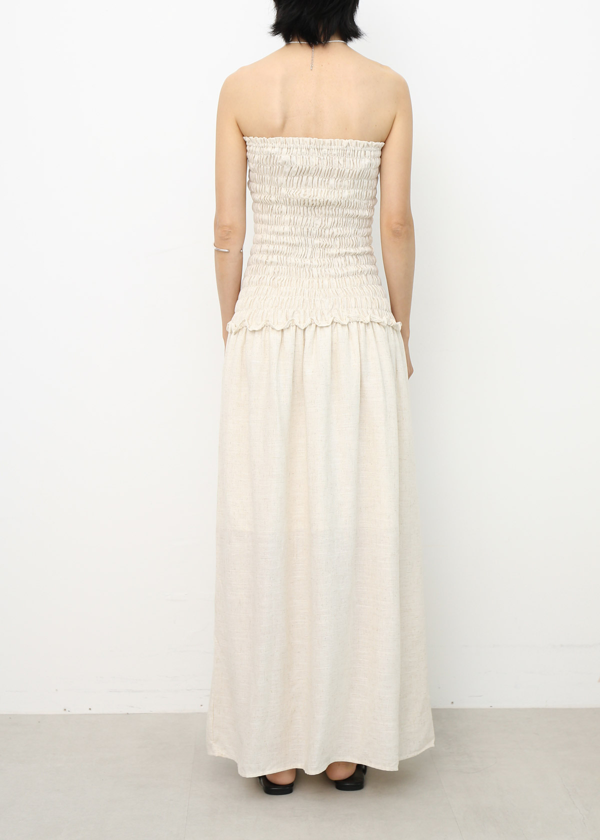 Linen Smocked Tube Dress [Oat]