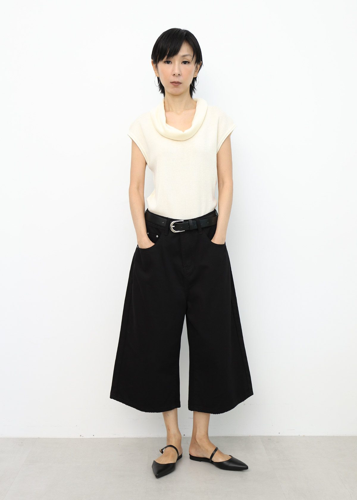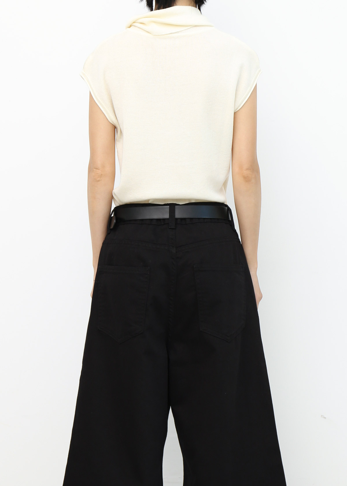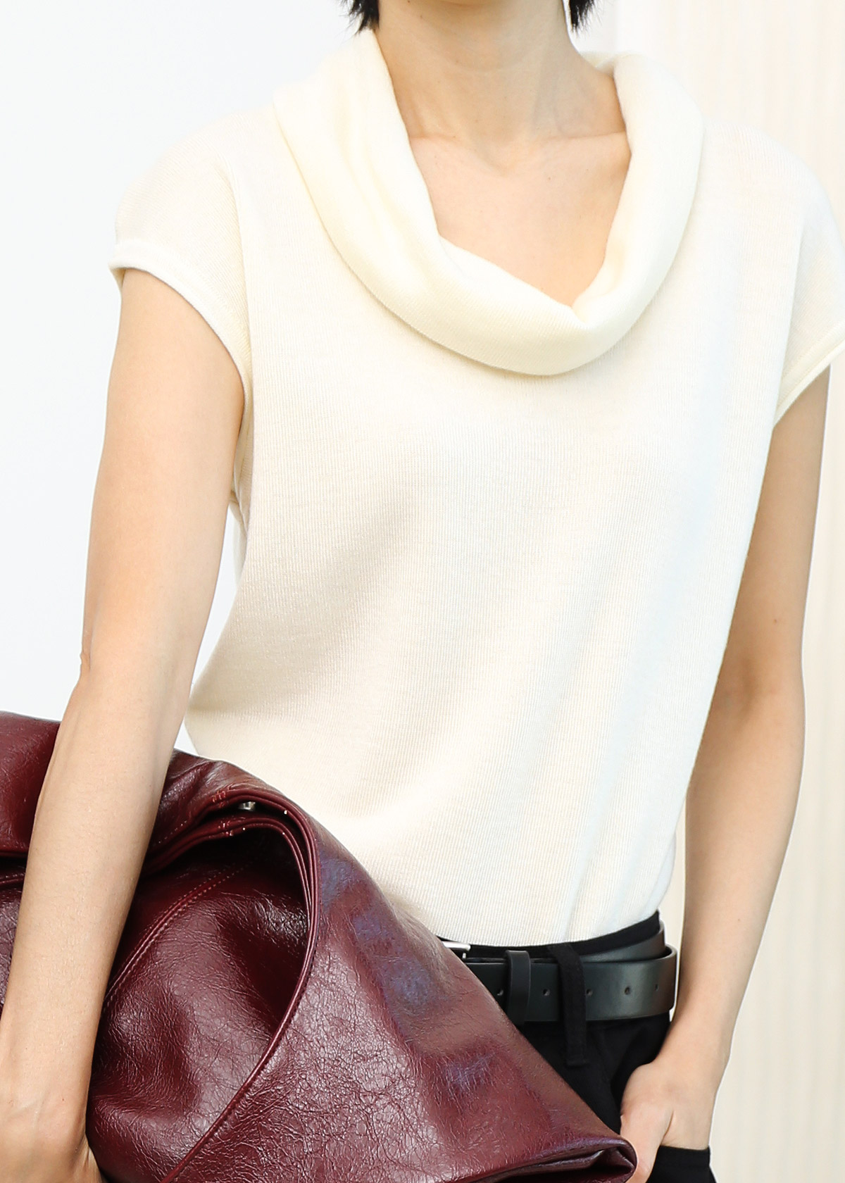 Rolled Collar Knit Top [Cream]