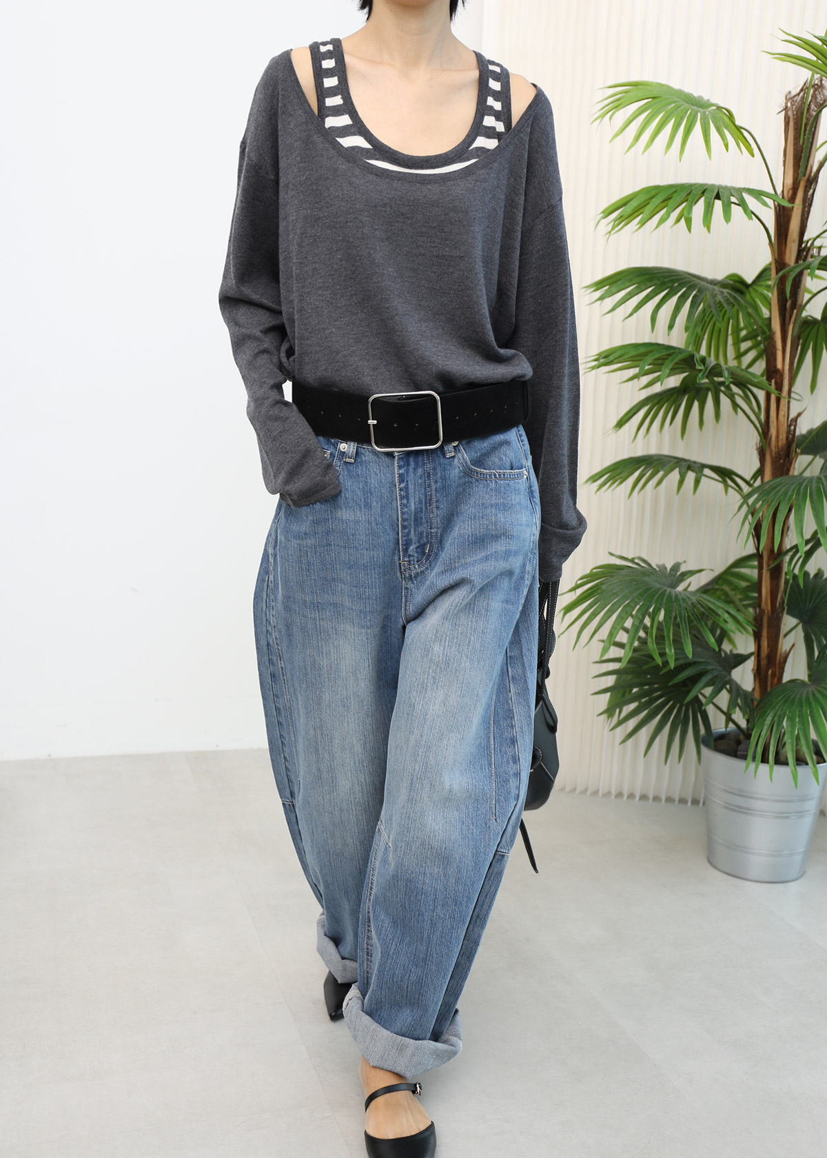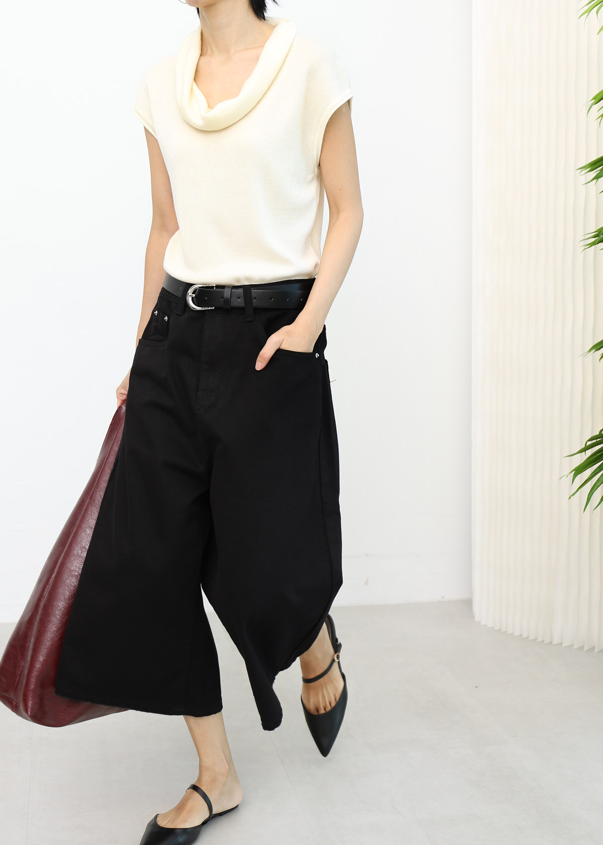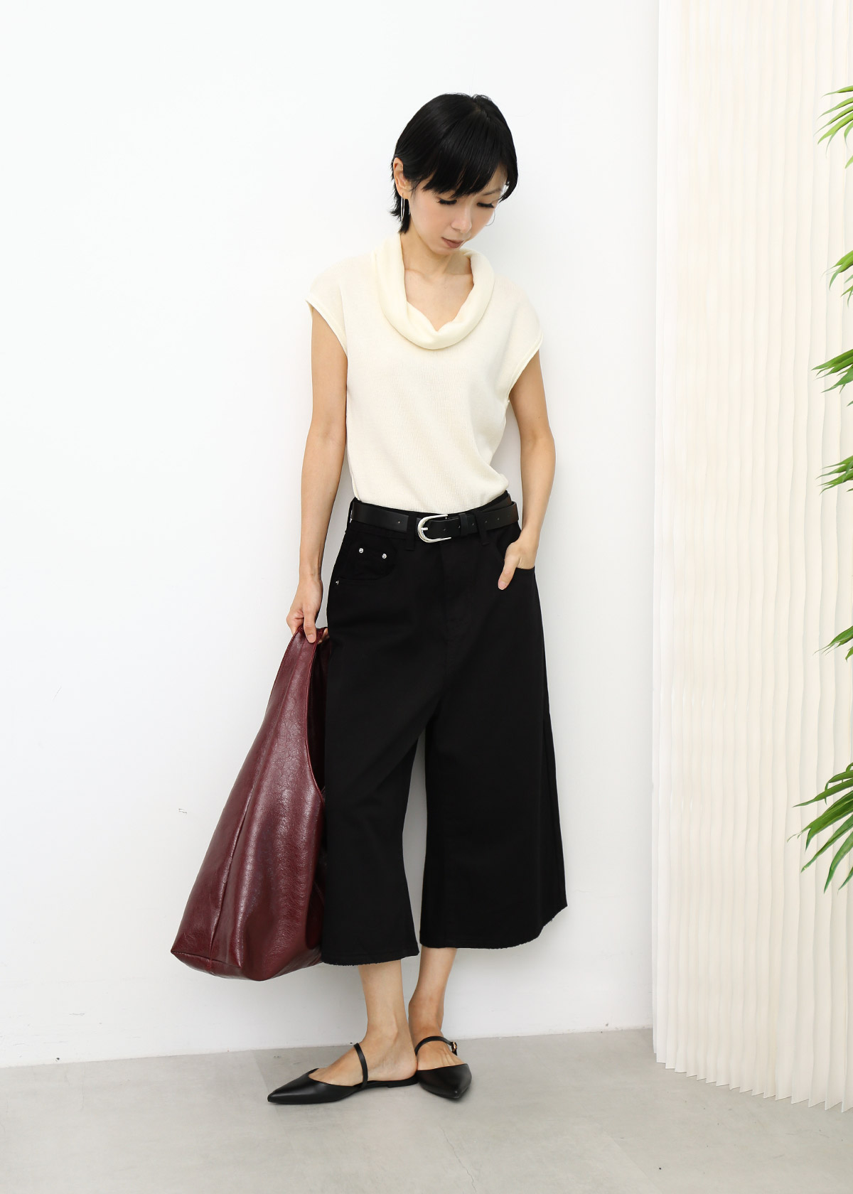 Rolled Collar Knit Top [Cream]