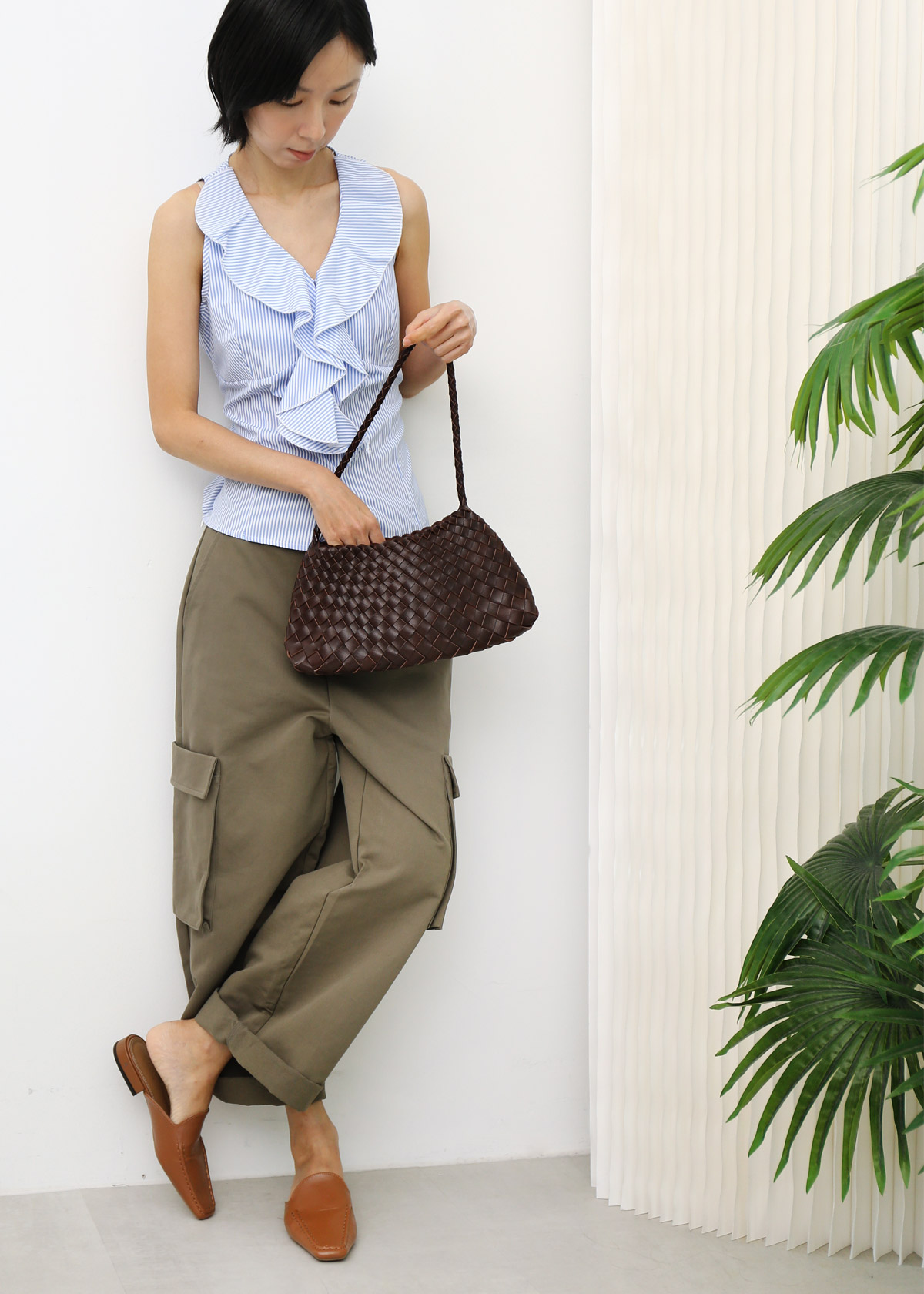 Yen is 163cm, UK 10-12 for top and bottom.
