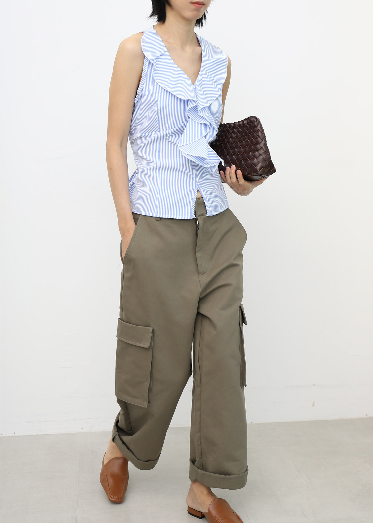 Ruffle Collar Stripe Top
