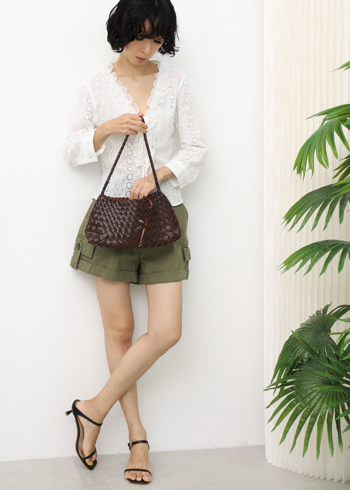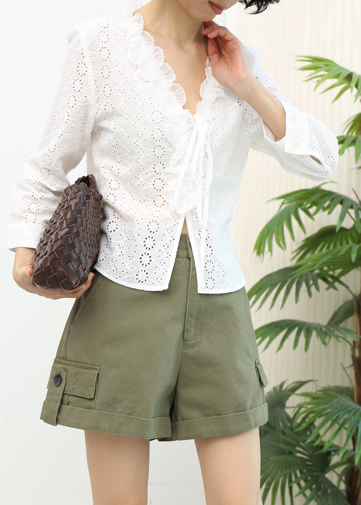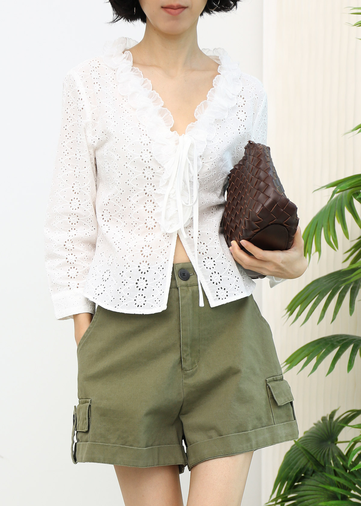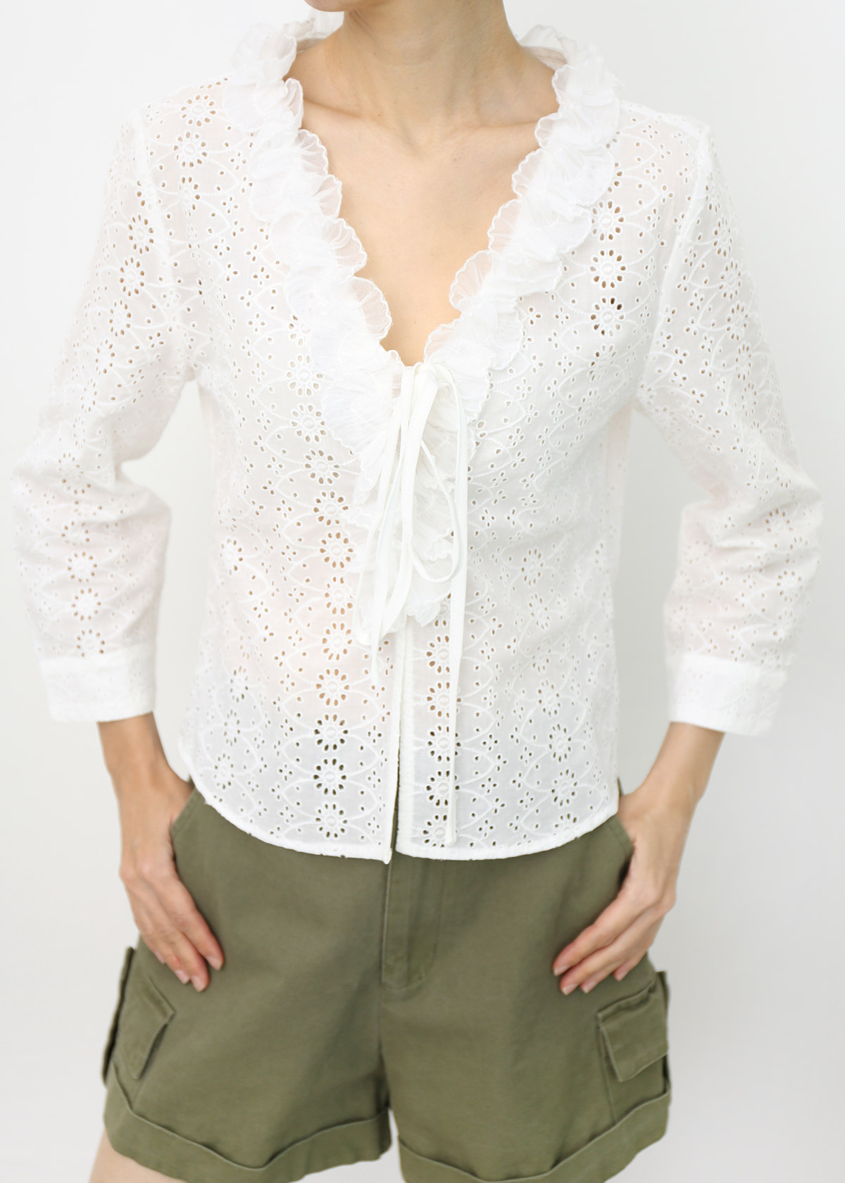 Ruffle Eyelet Lace Tie String Top