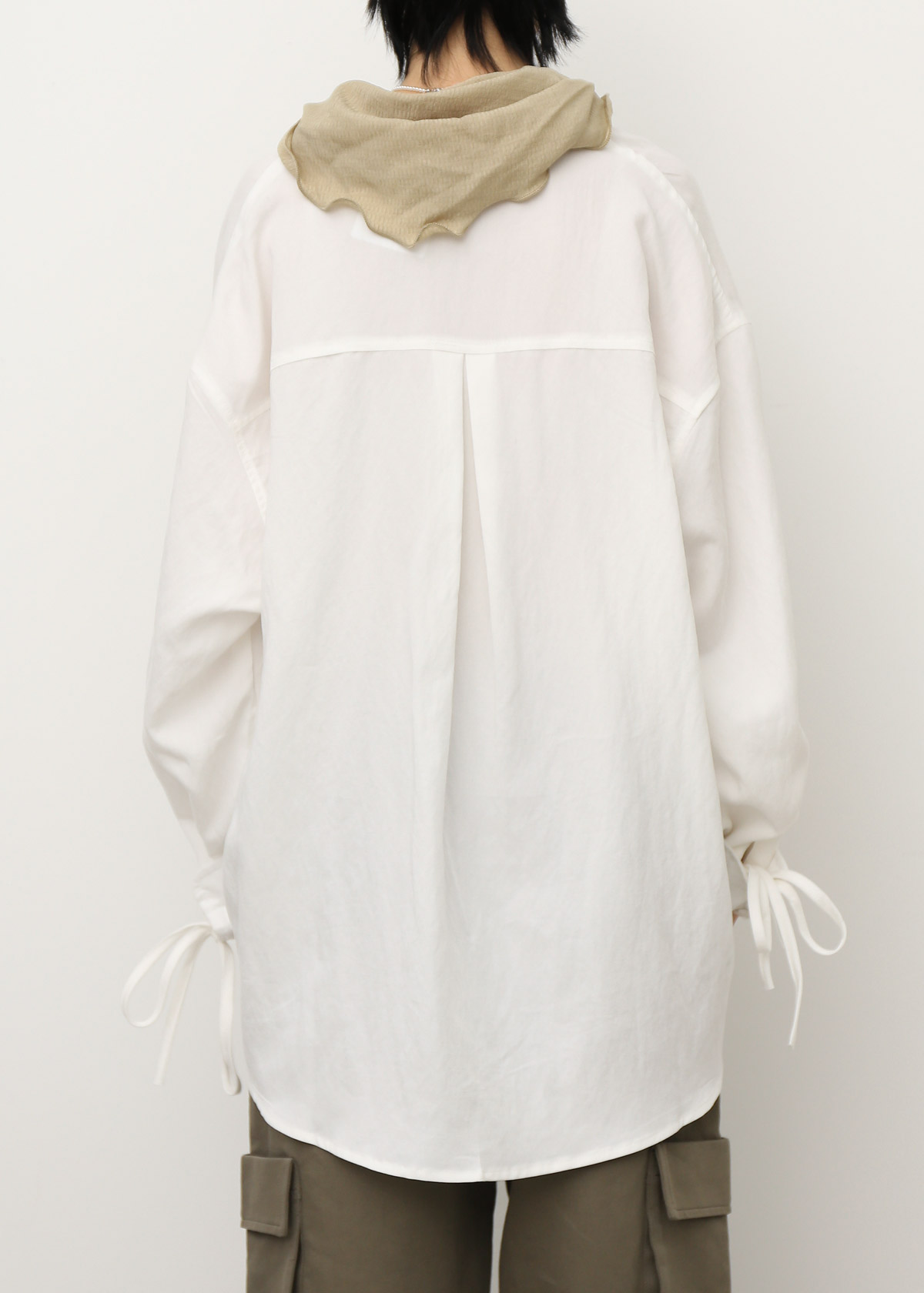 - Ruffle flap shirt with tie string detail at sleeves cuff