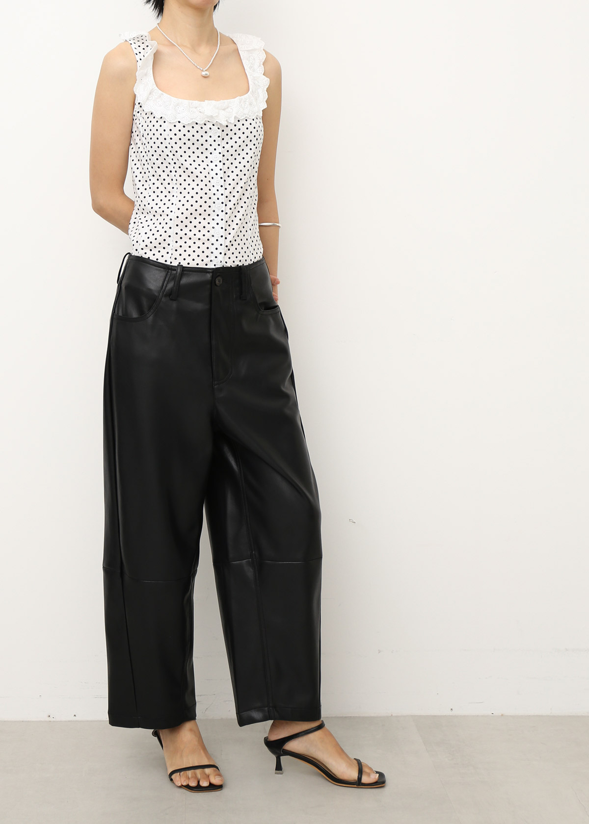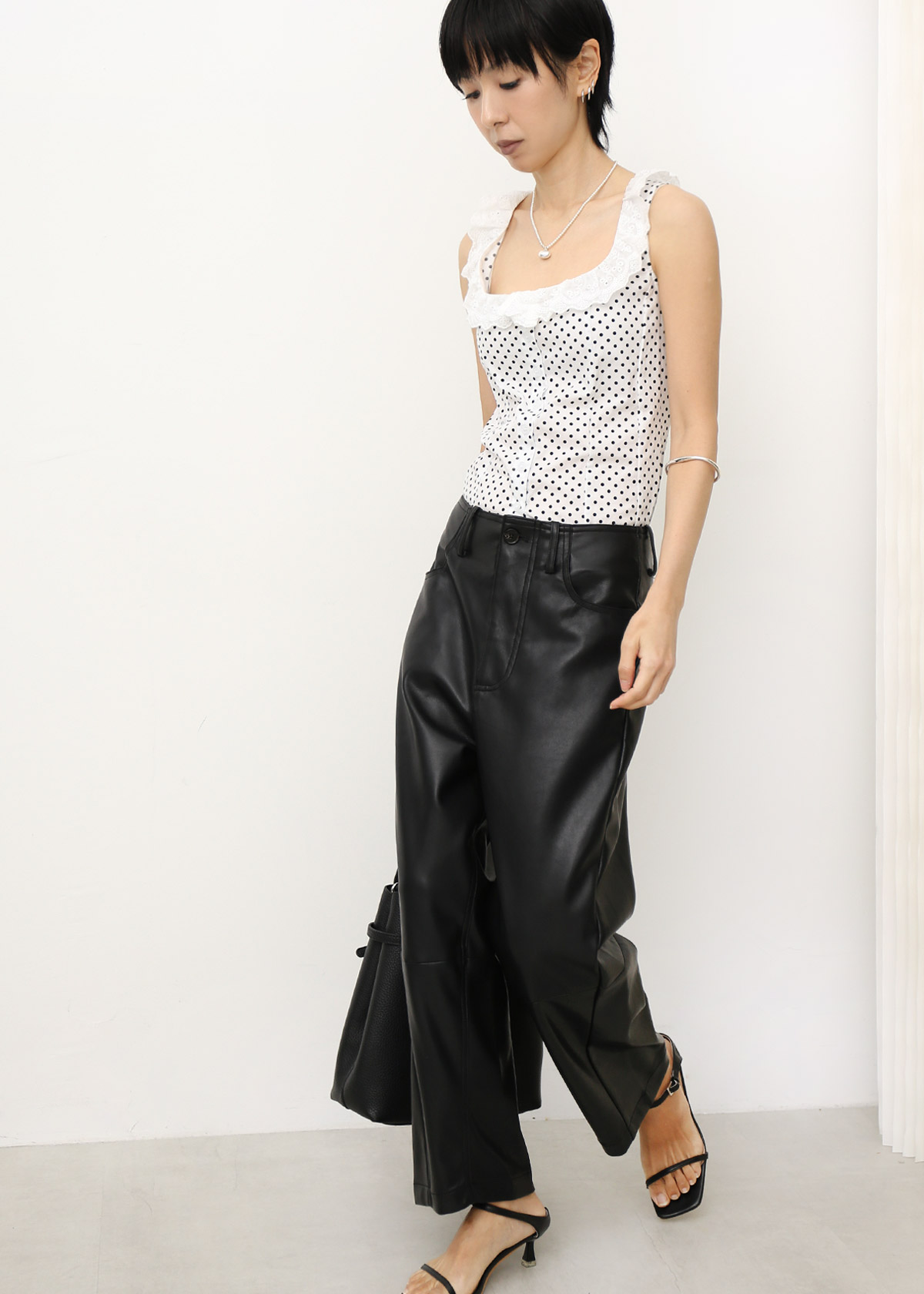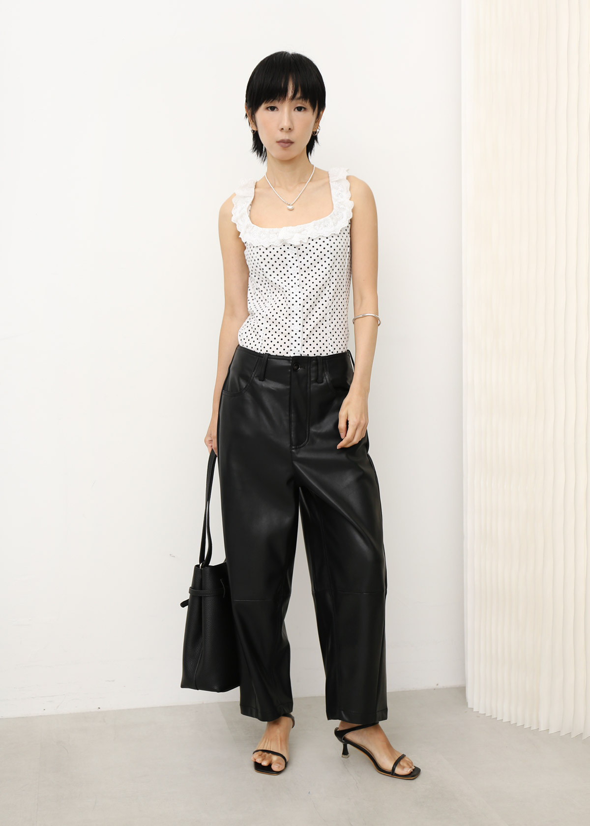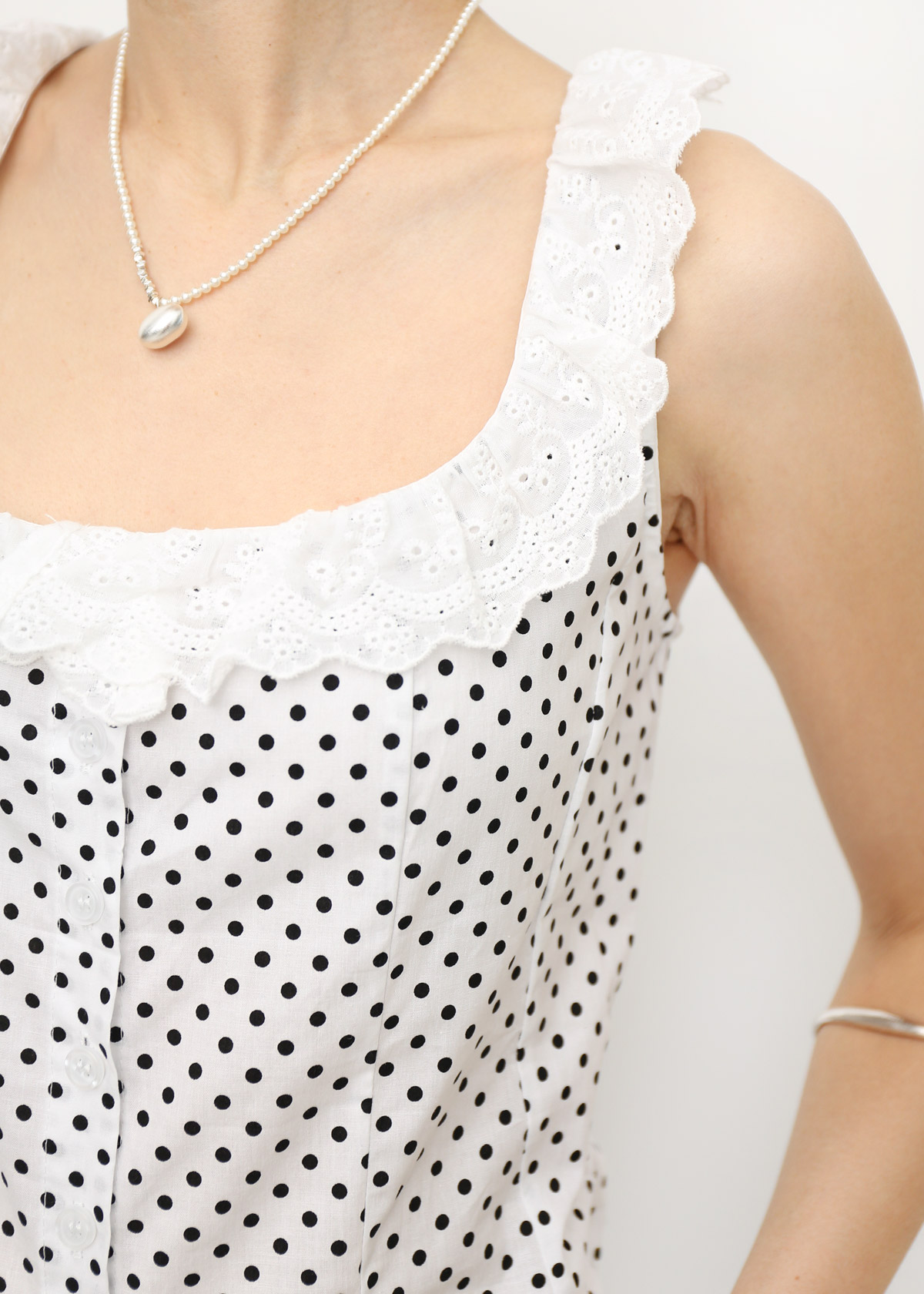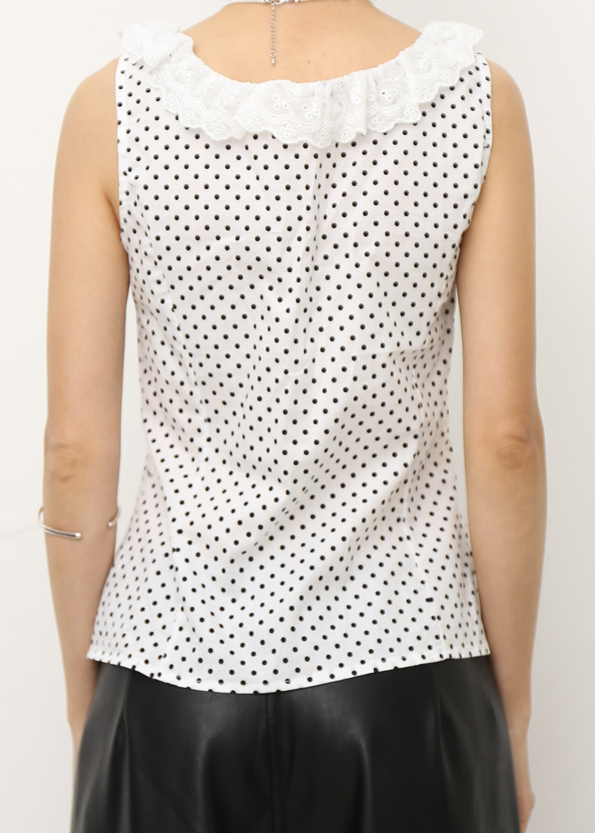 Scoop Neck Ruffle Lace Dottie Top [White]