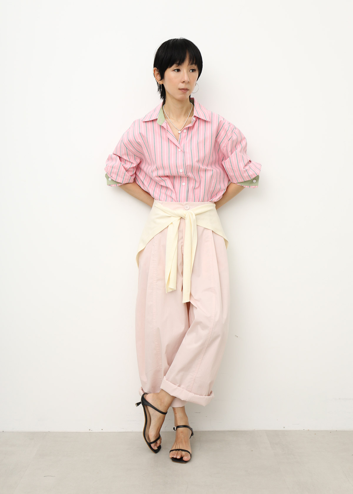 Yen is 163cm, UK 10 for top and bottom.