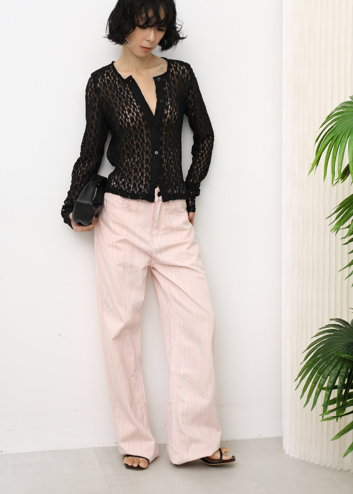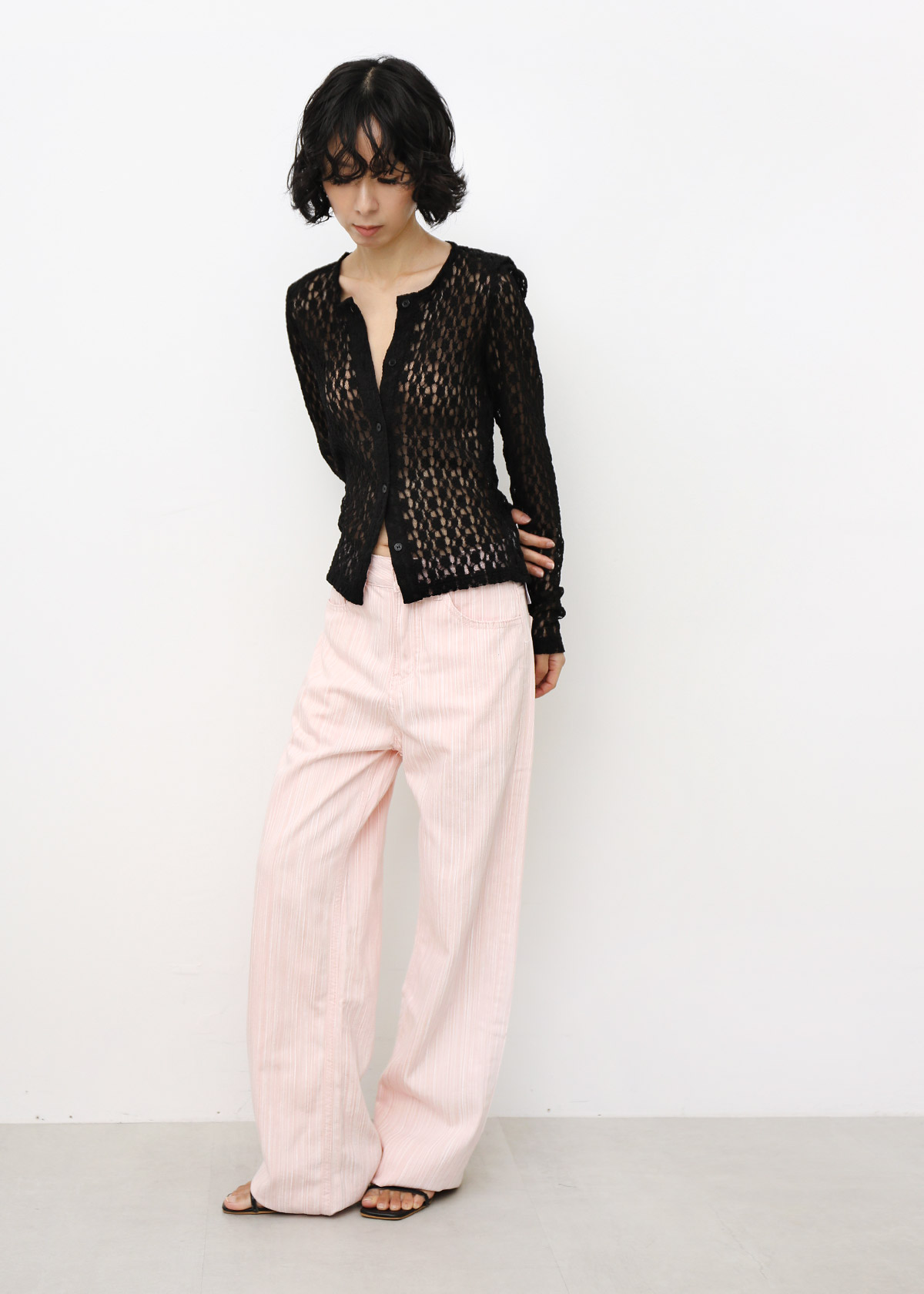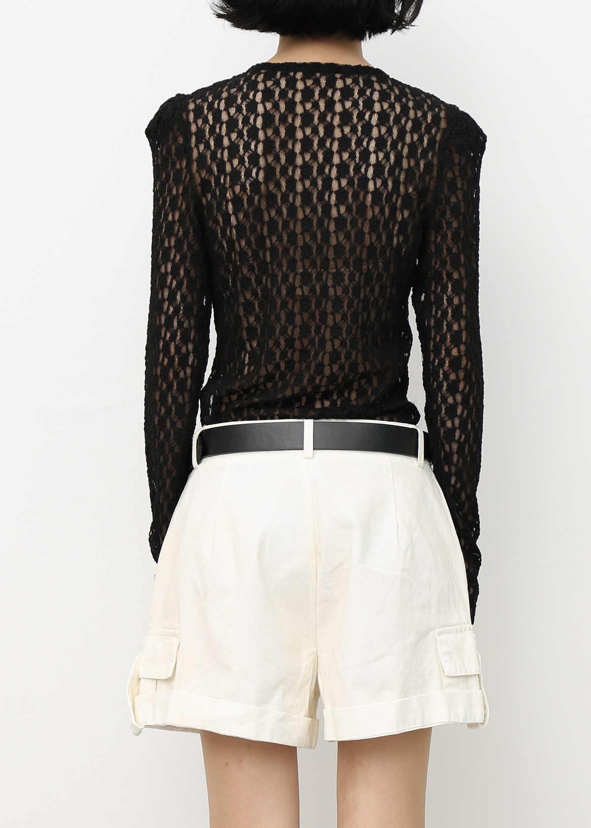Sheer Knitted Lace Top [Black]