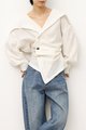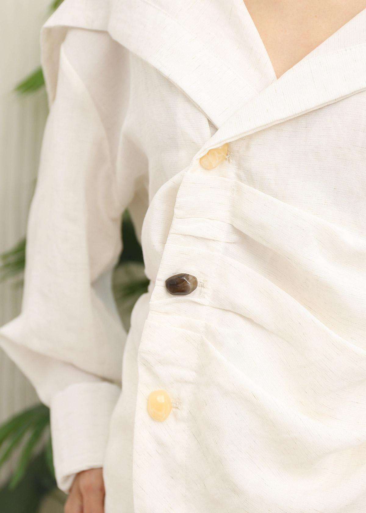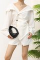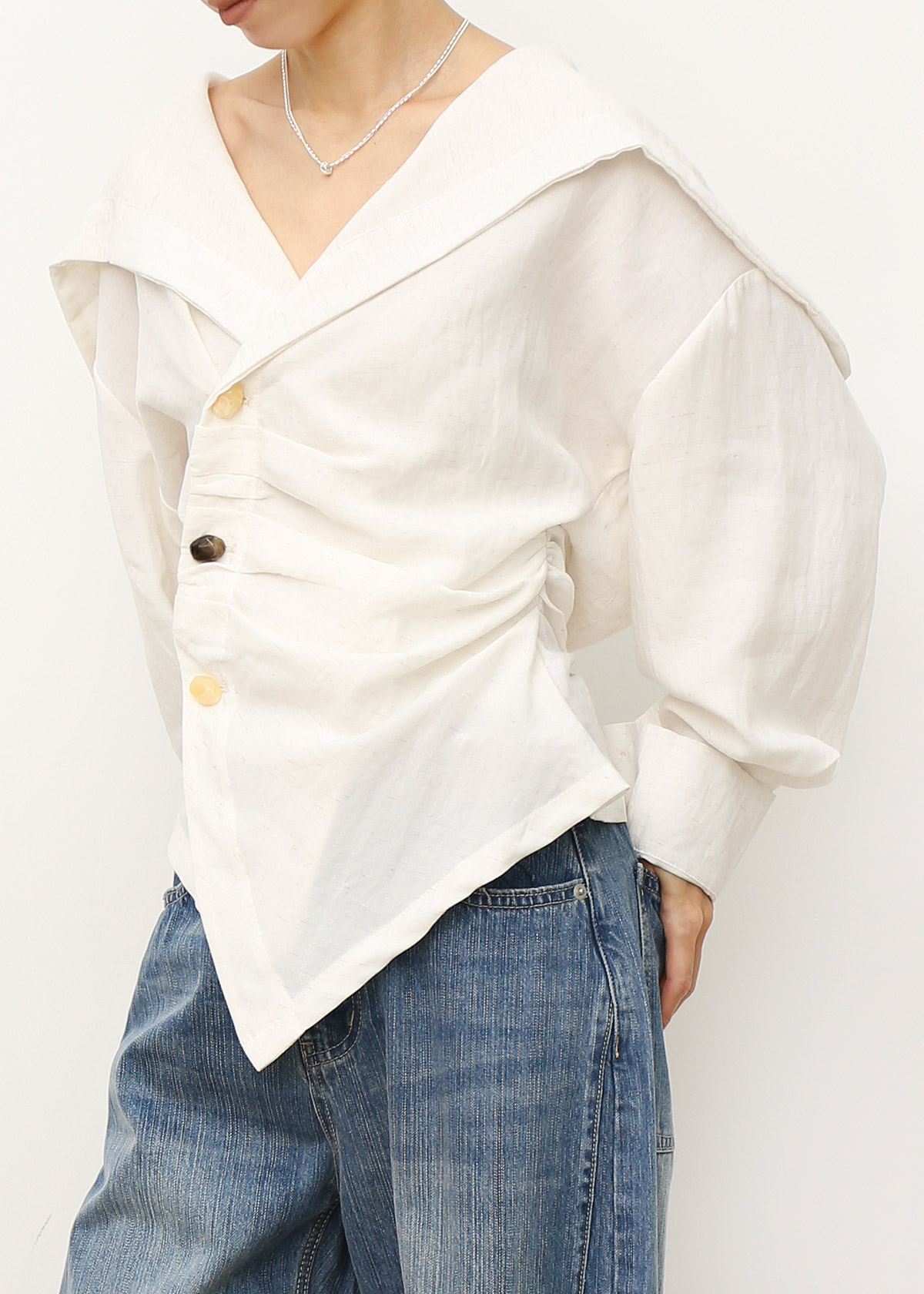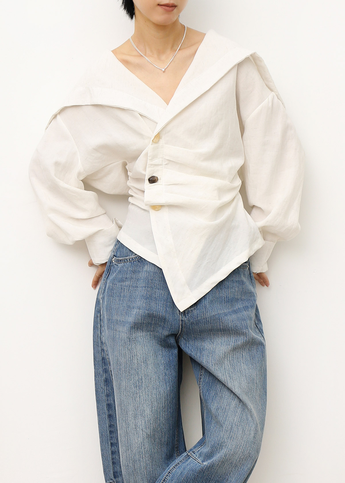 Side Stone Buttons Flap Collar Blouse