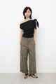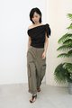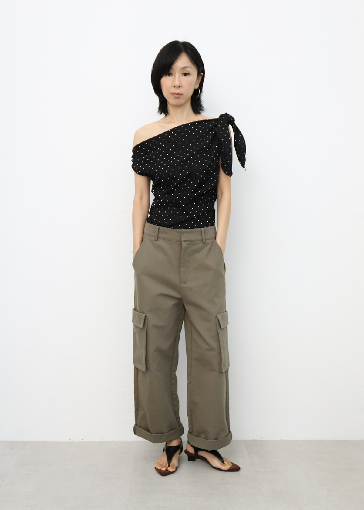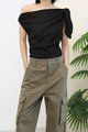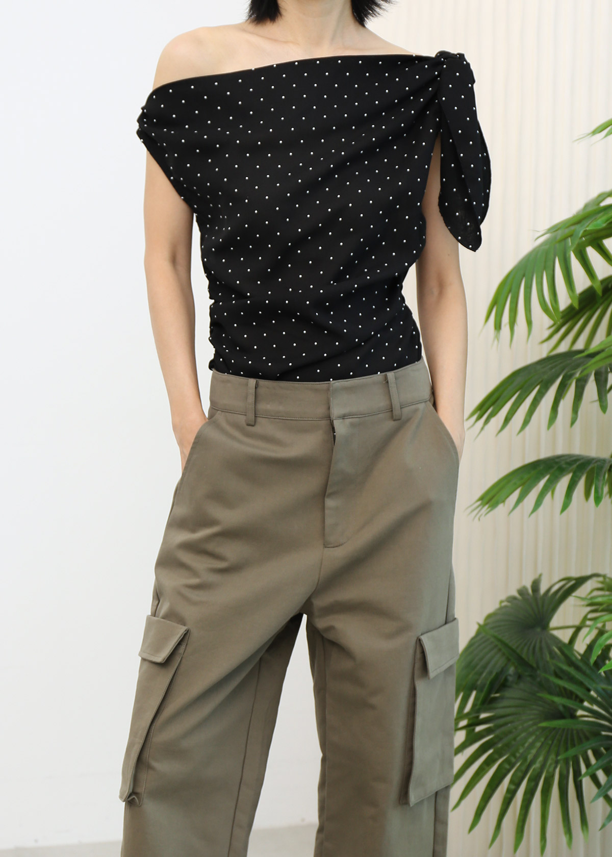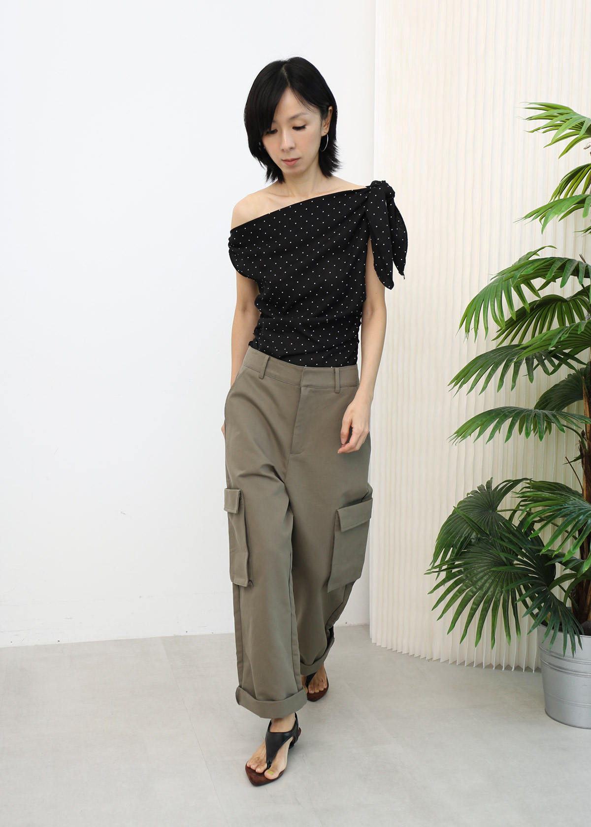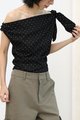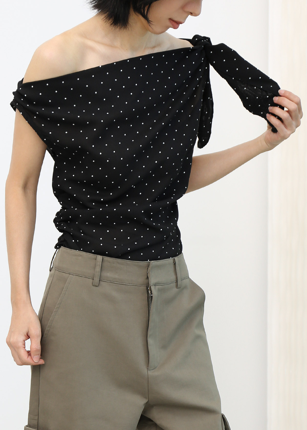 Slant Shoulder Polka Dot Top [Black]