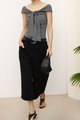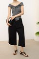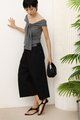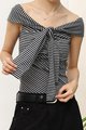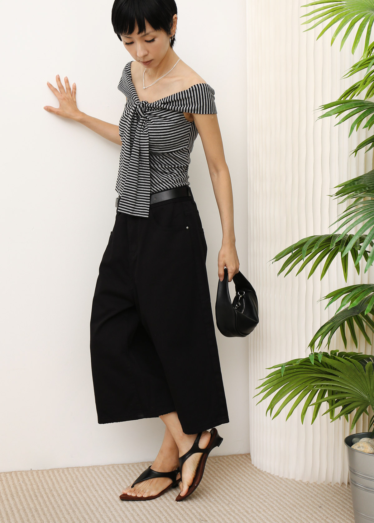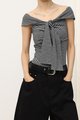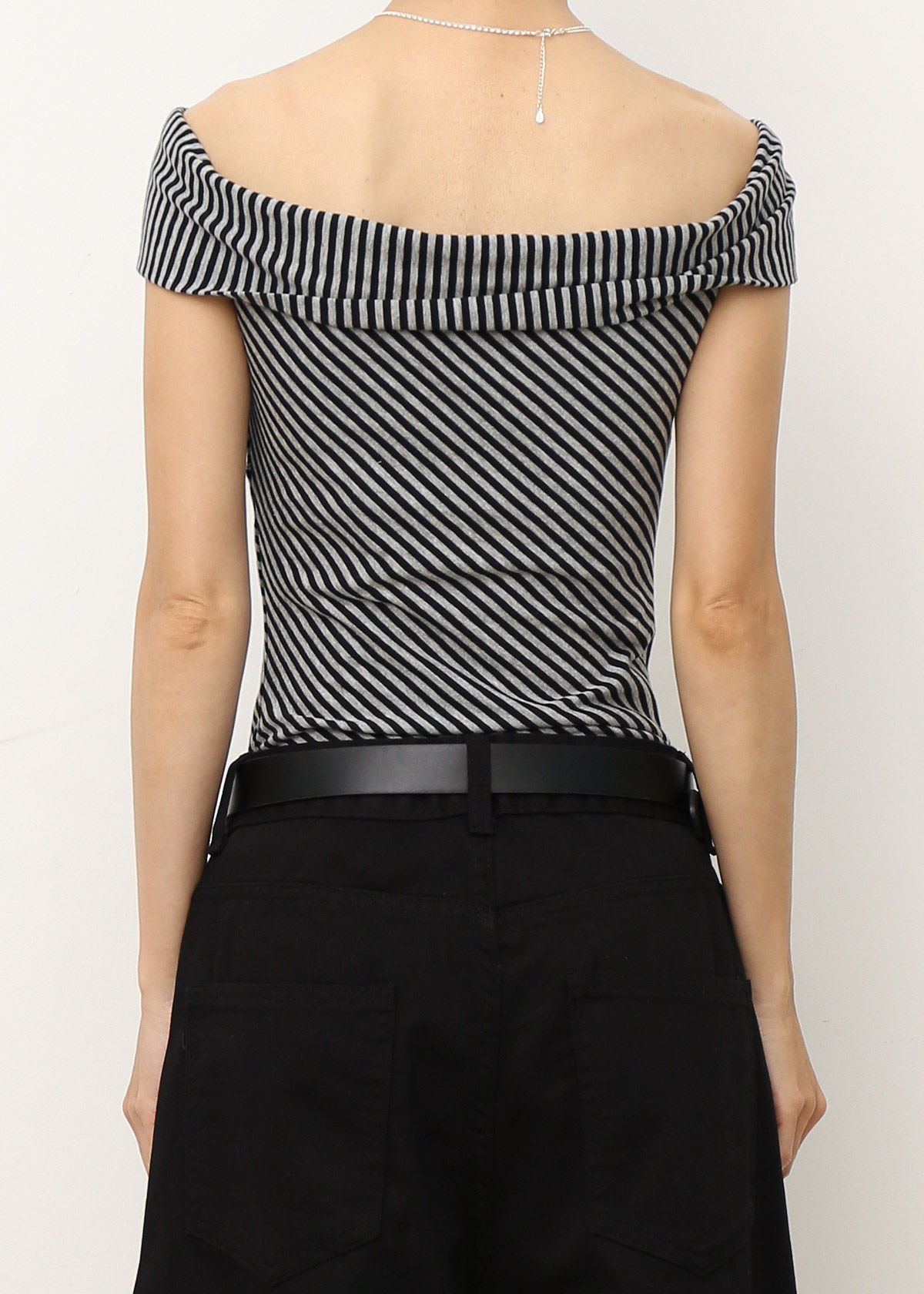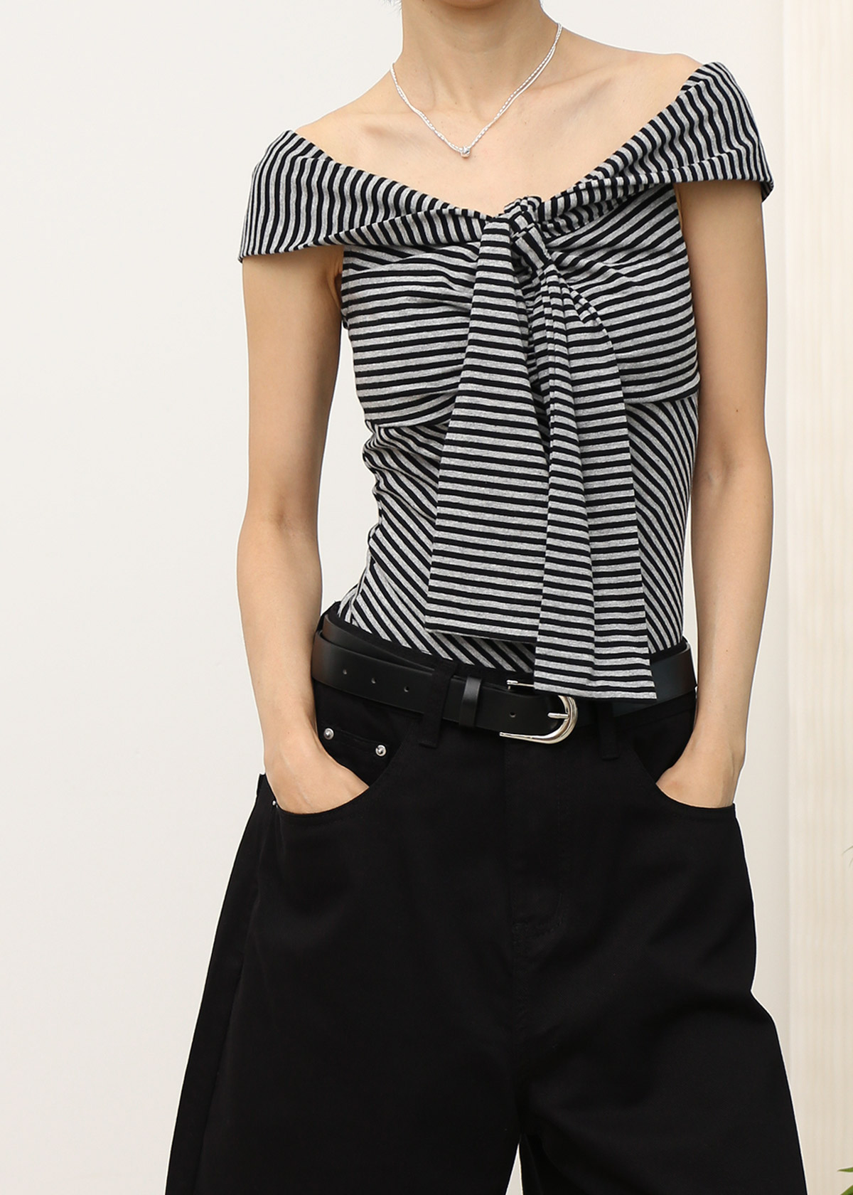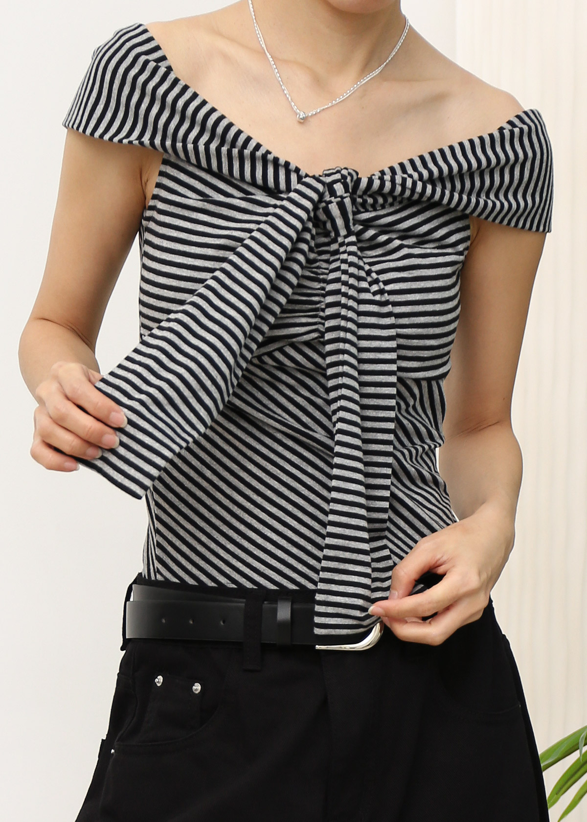 Stripe Tie Knot Off-Shoulder Tee [Grey]