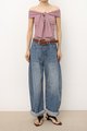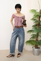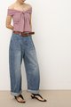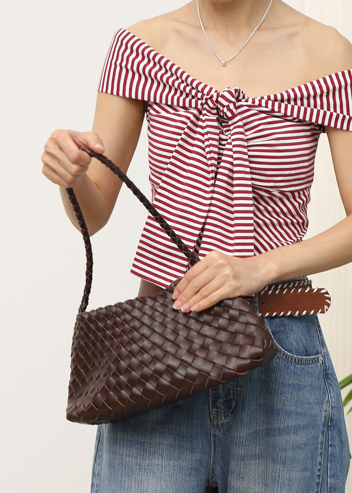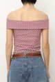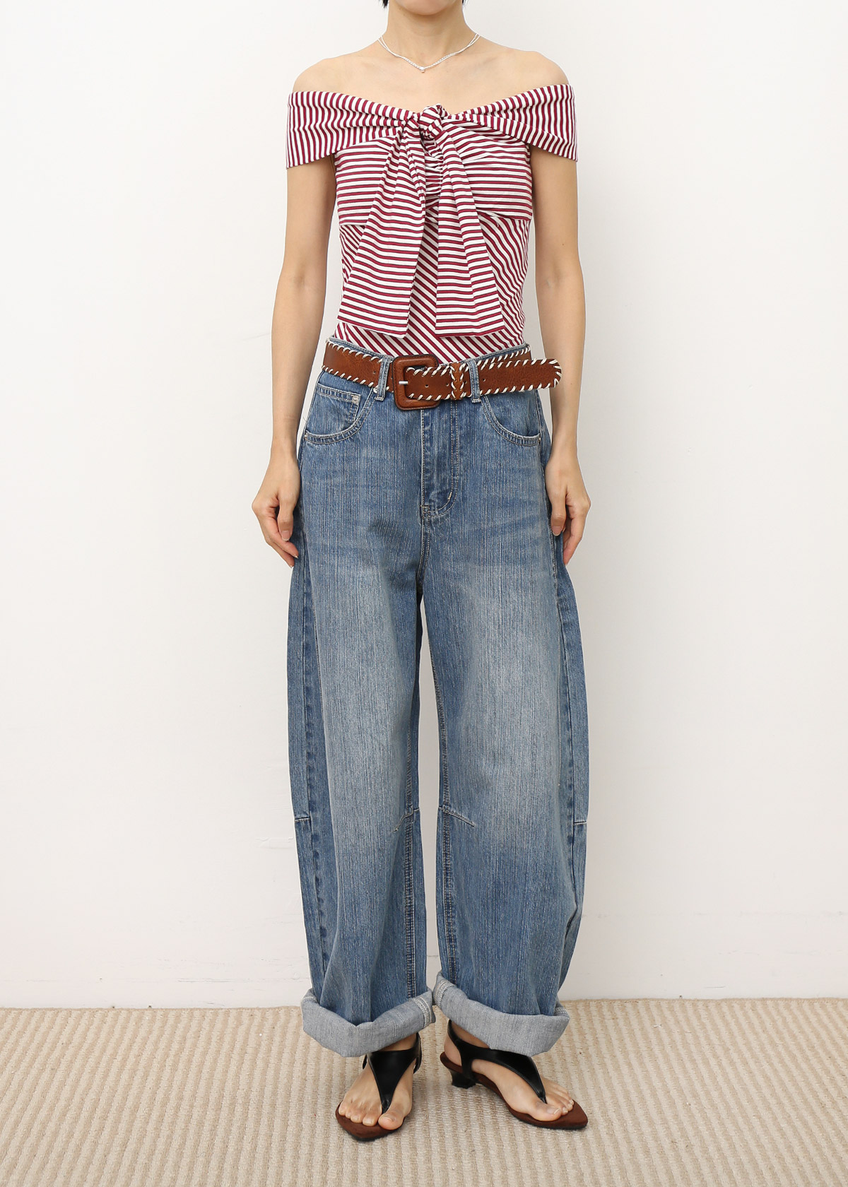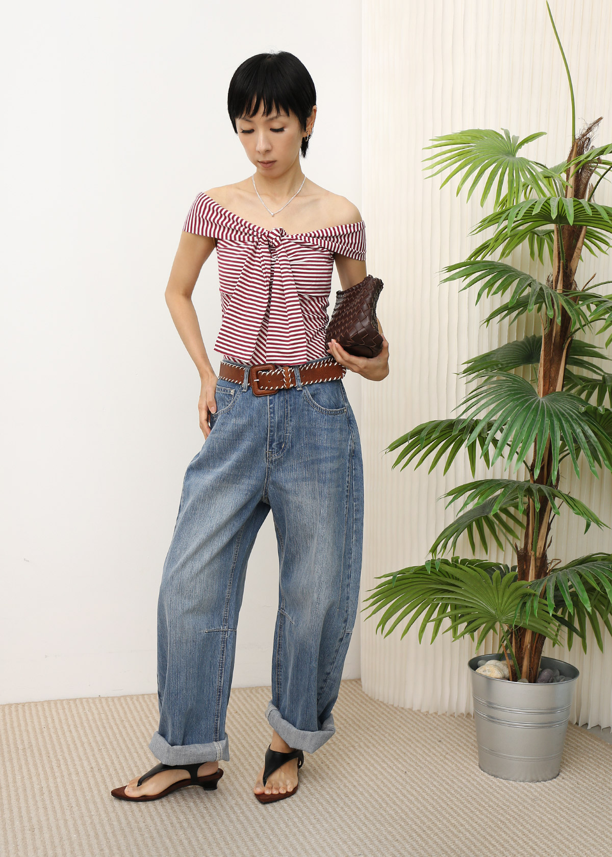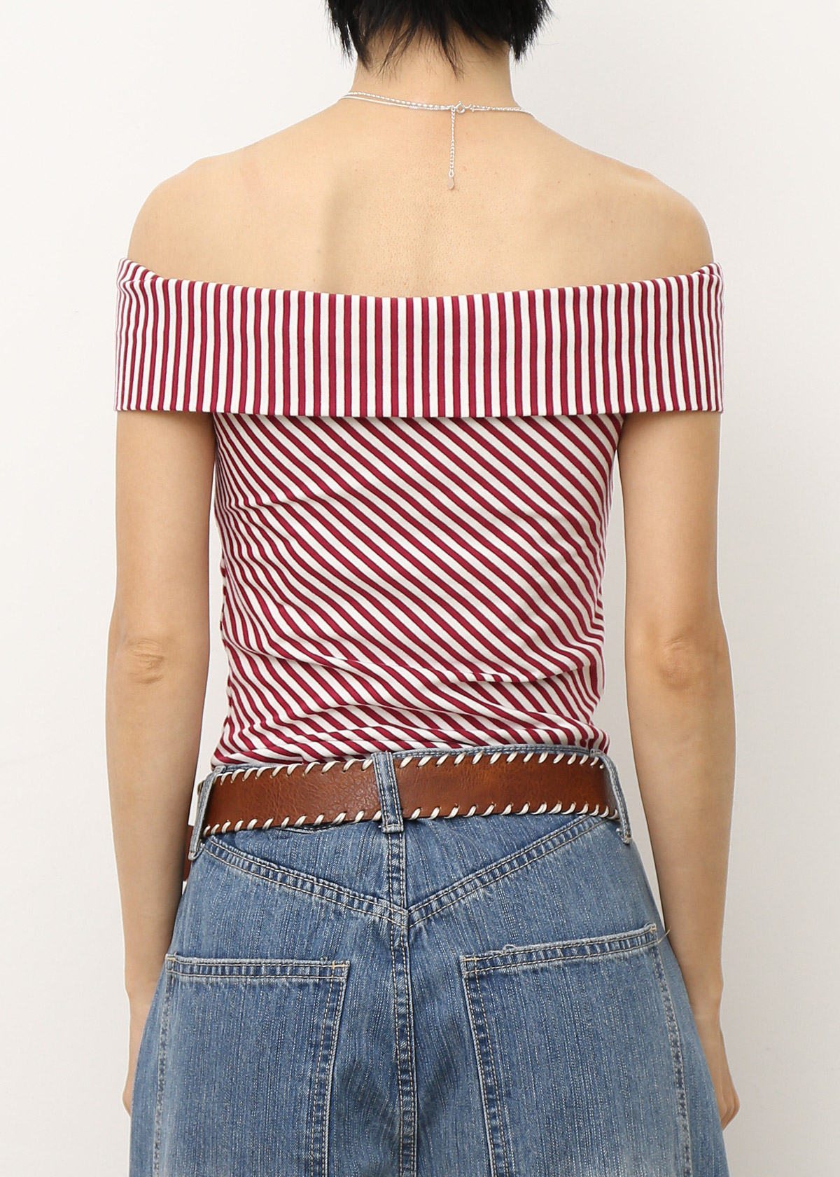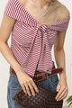 Stripe Tie Knot Off-Shoulder Tee [Red]
