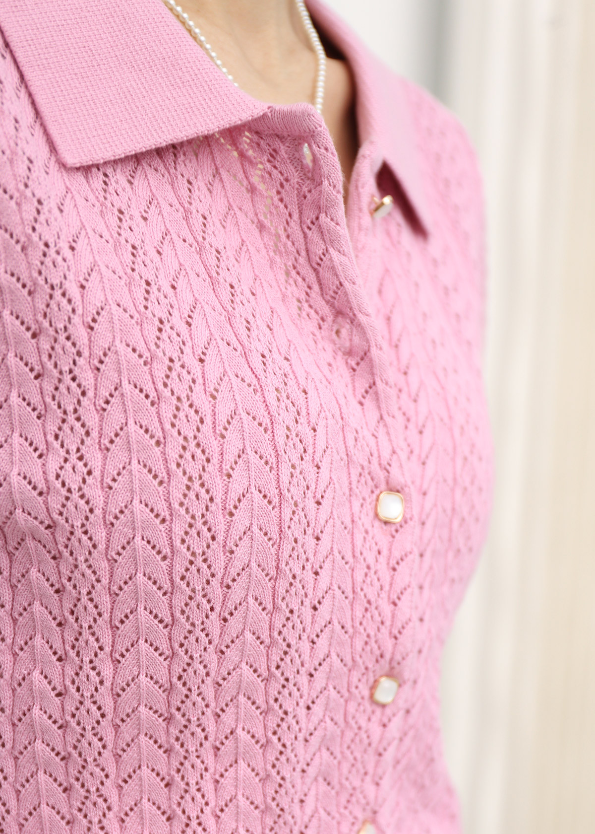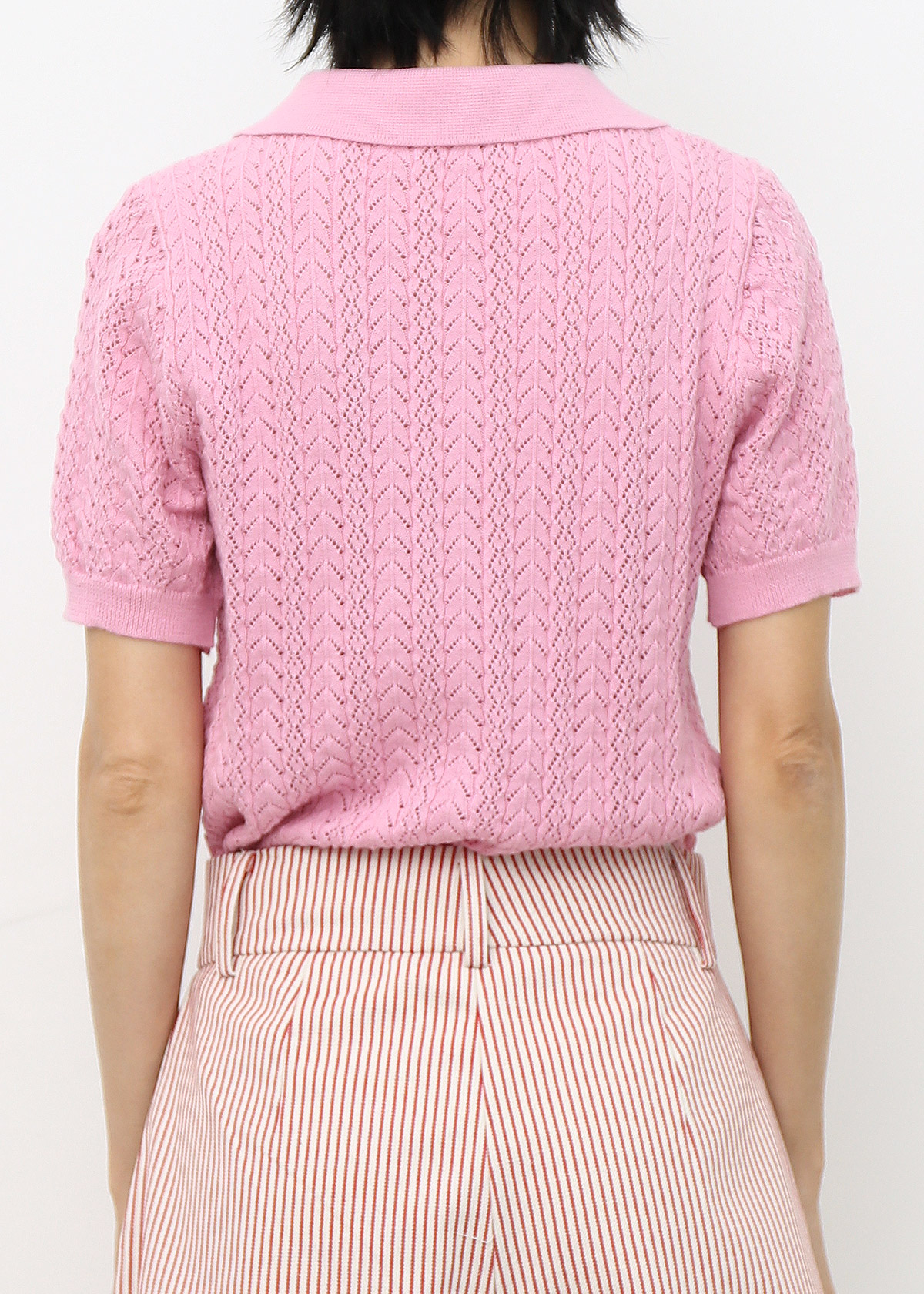 Textured Polo Knit Top [Pink]