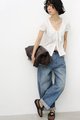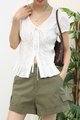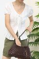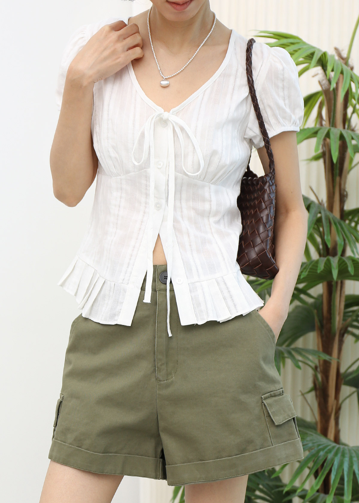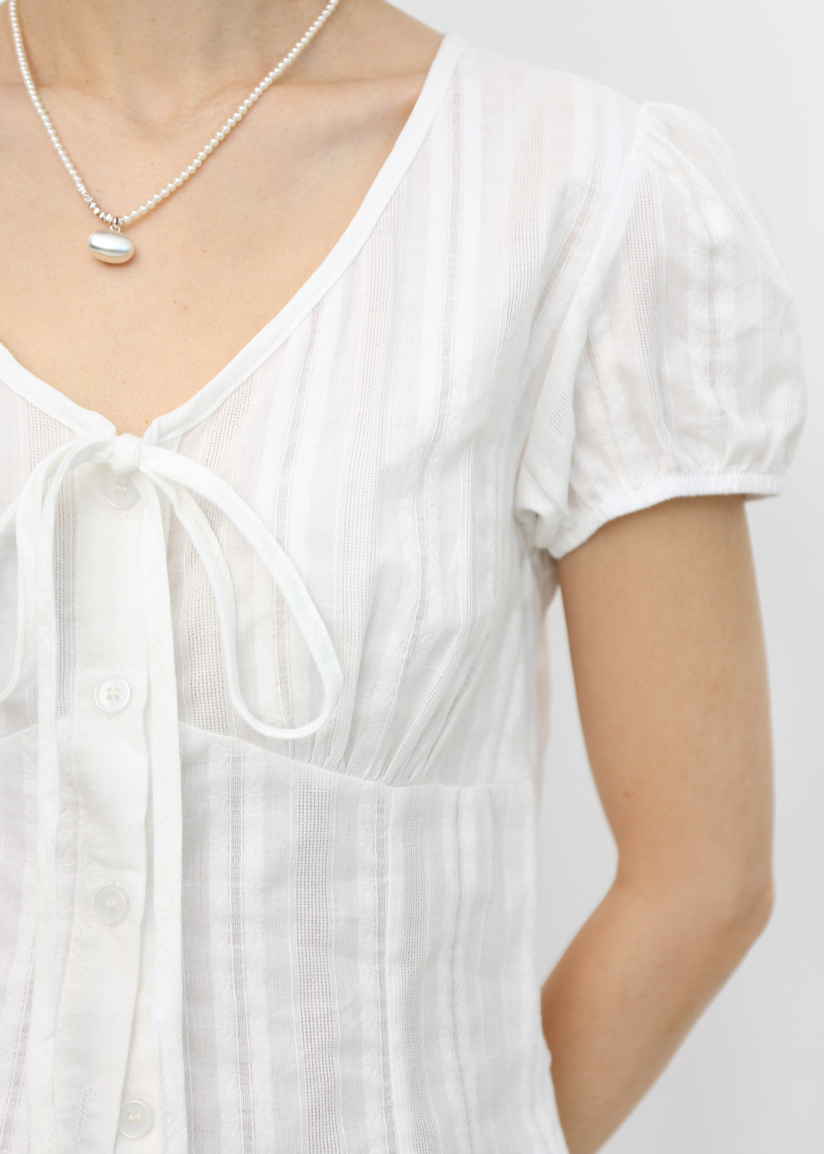 Textured V Neck Puff Sleeves Top