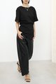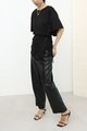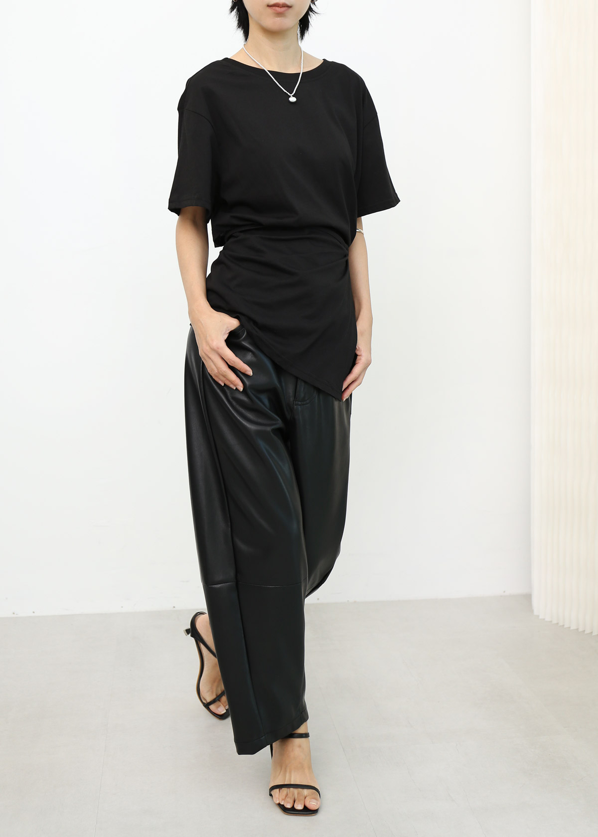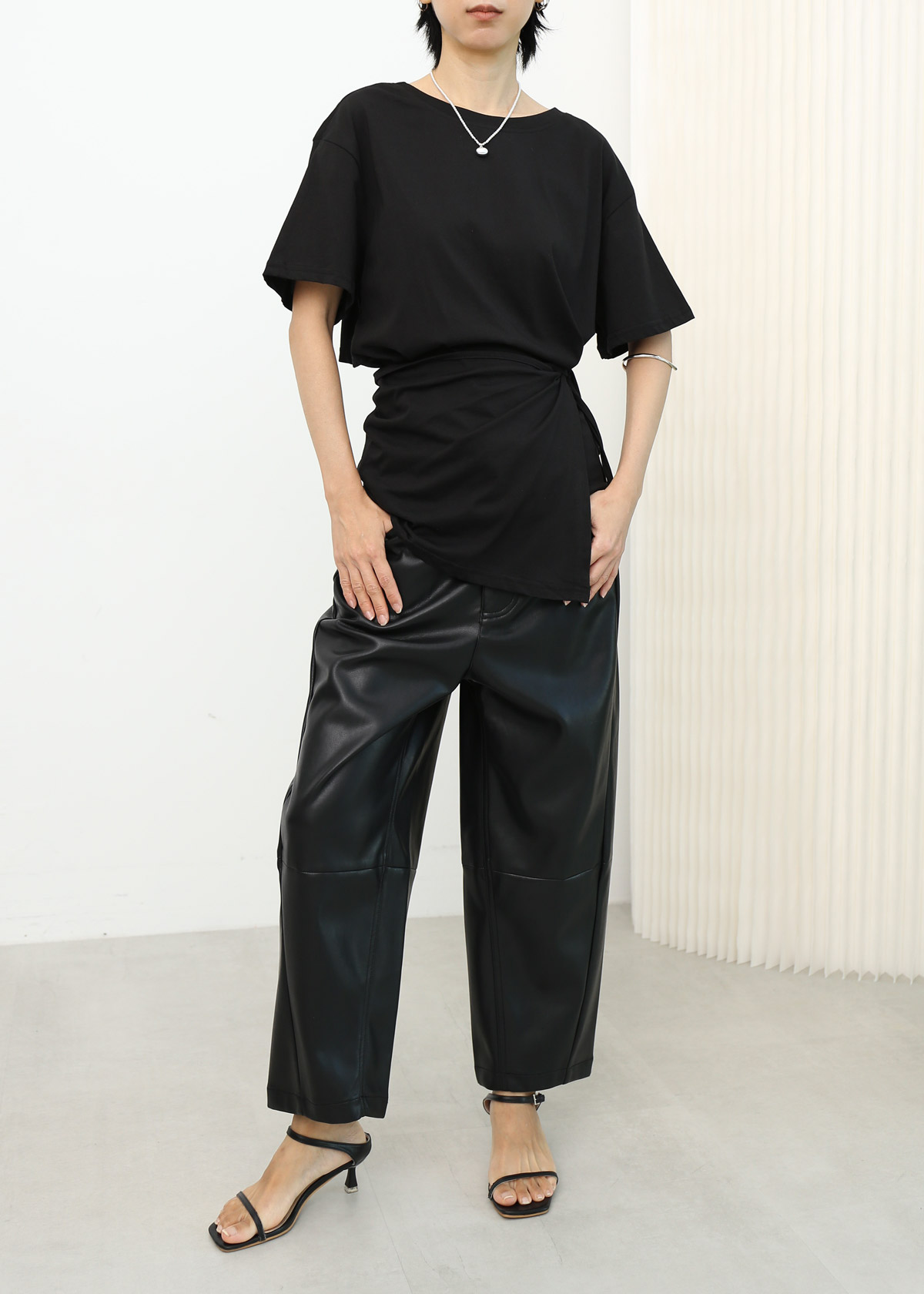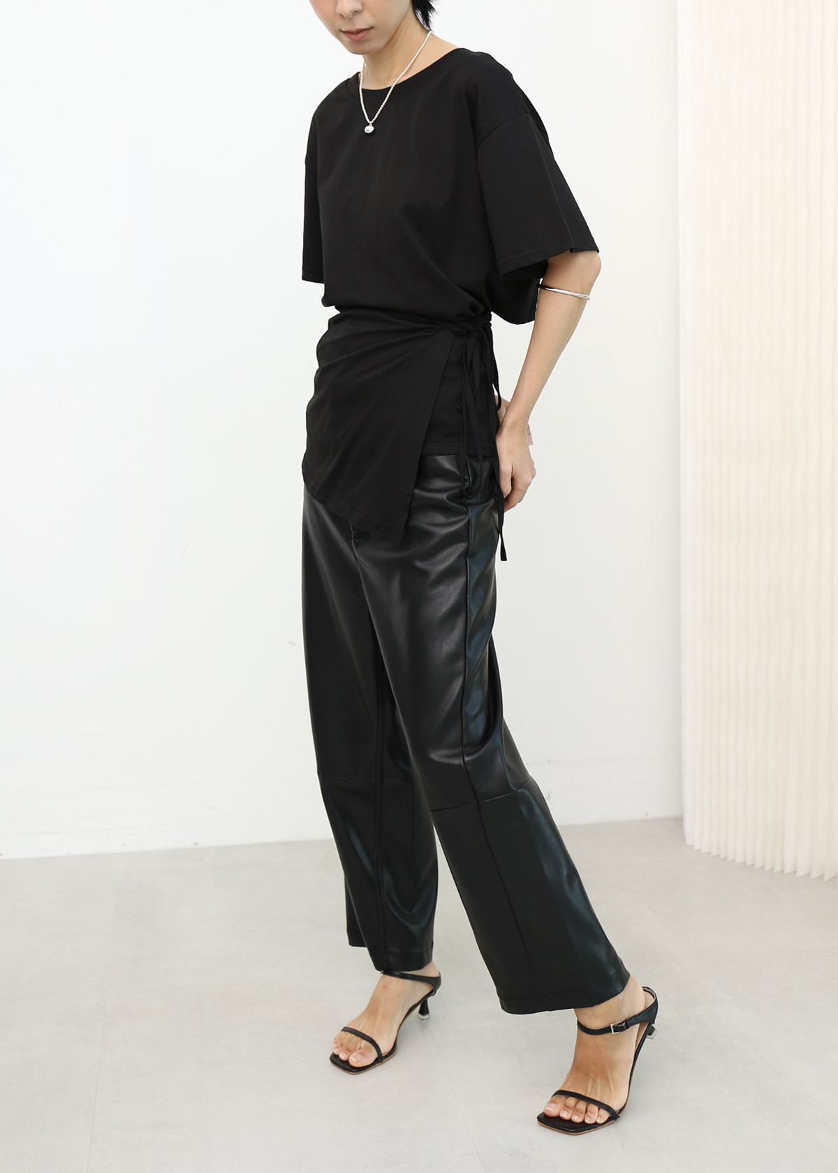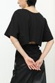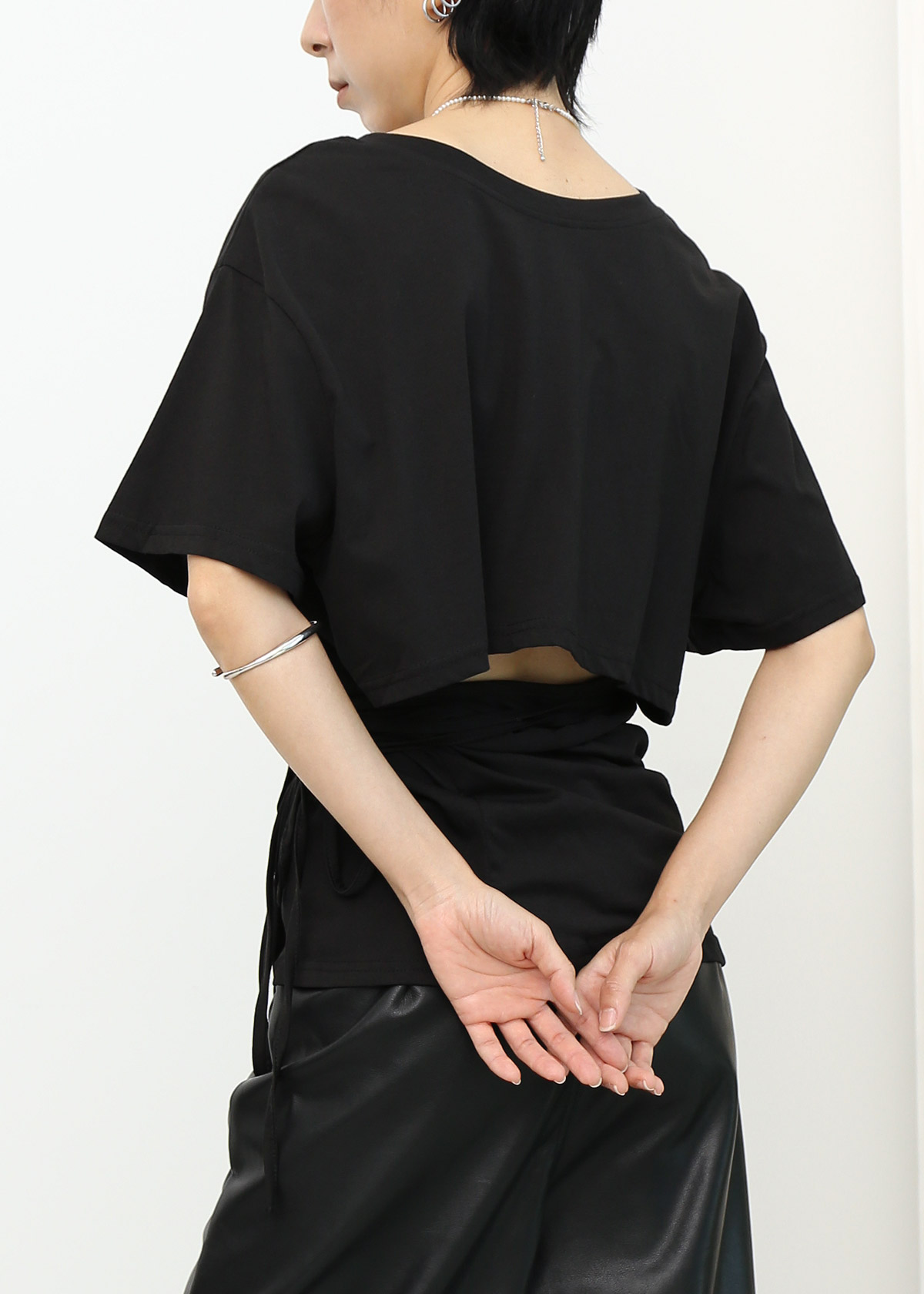 - Short sleeves tee with cropped back and flap with tie sash to wrap around
